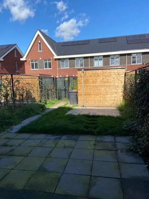 Op prachtige locatie nabij winkels en scholen gelegen prachtige nieuwe tussenwoning met 4 kamers en ruime tuin met berging.
