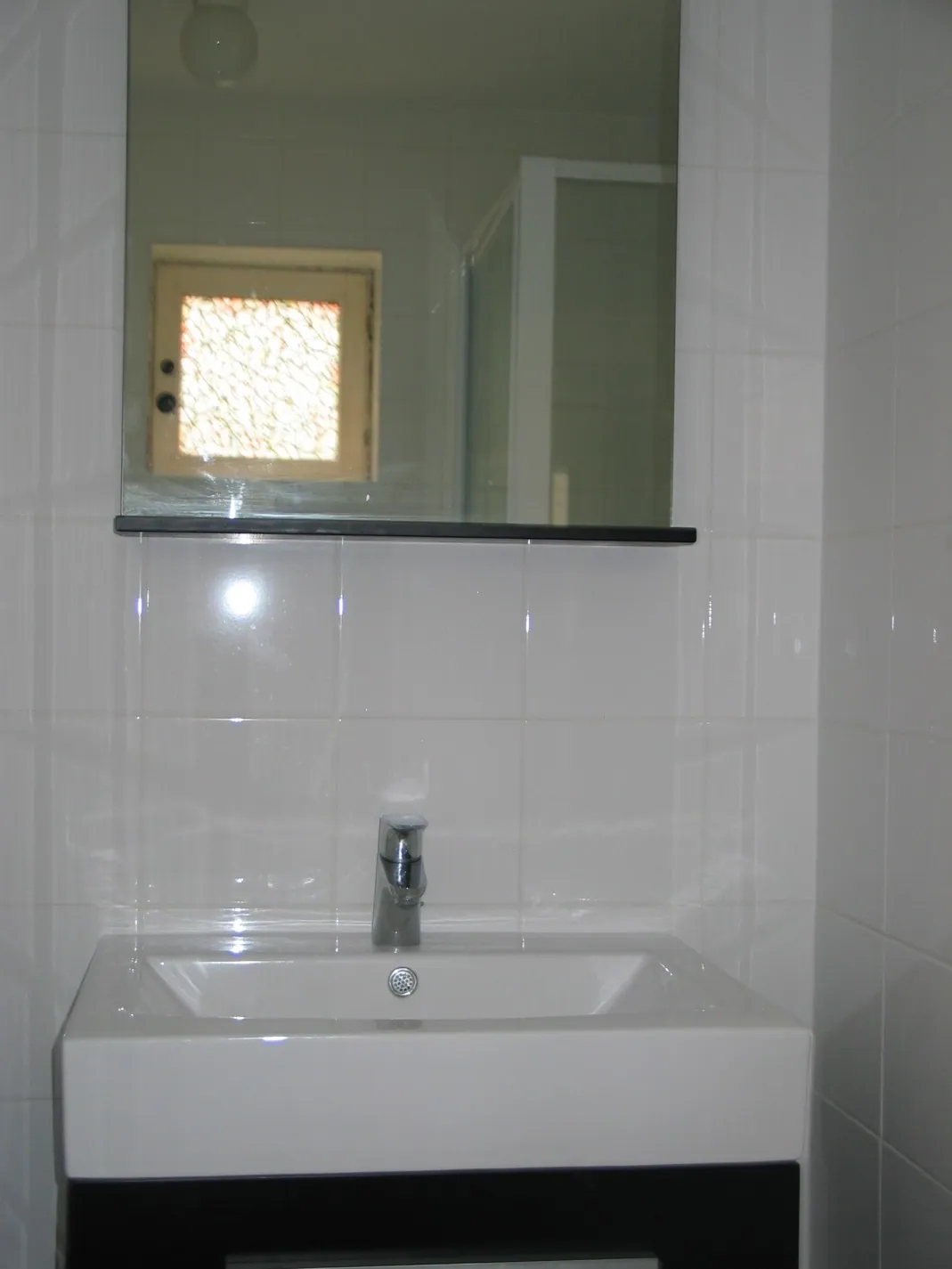 - de badkamer is recentelijk geheel opnieuw betegeld en voorzien van wastafelmeubel, douchecabine en design radiator;