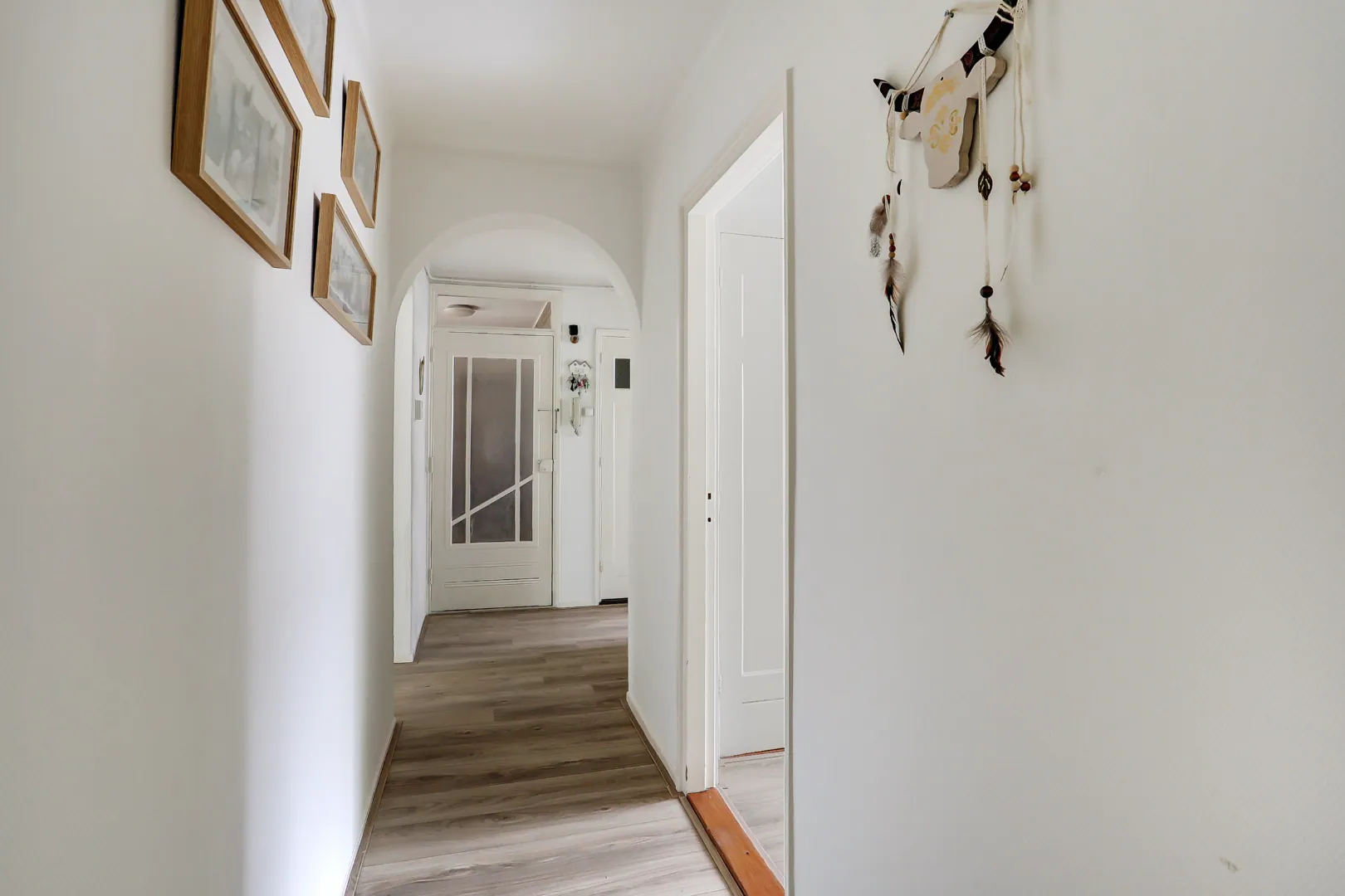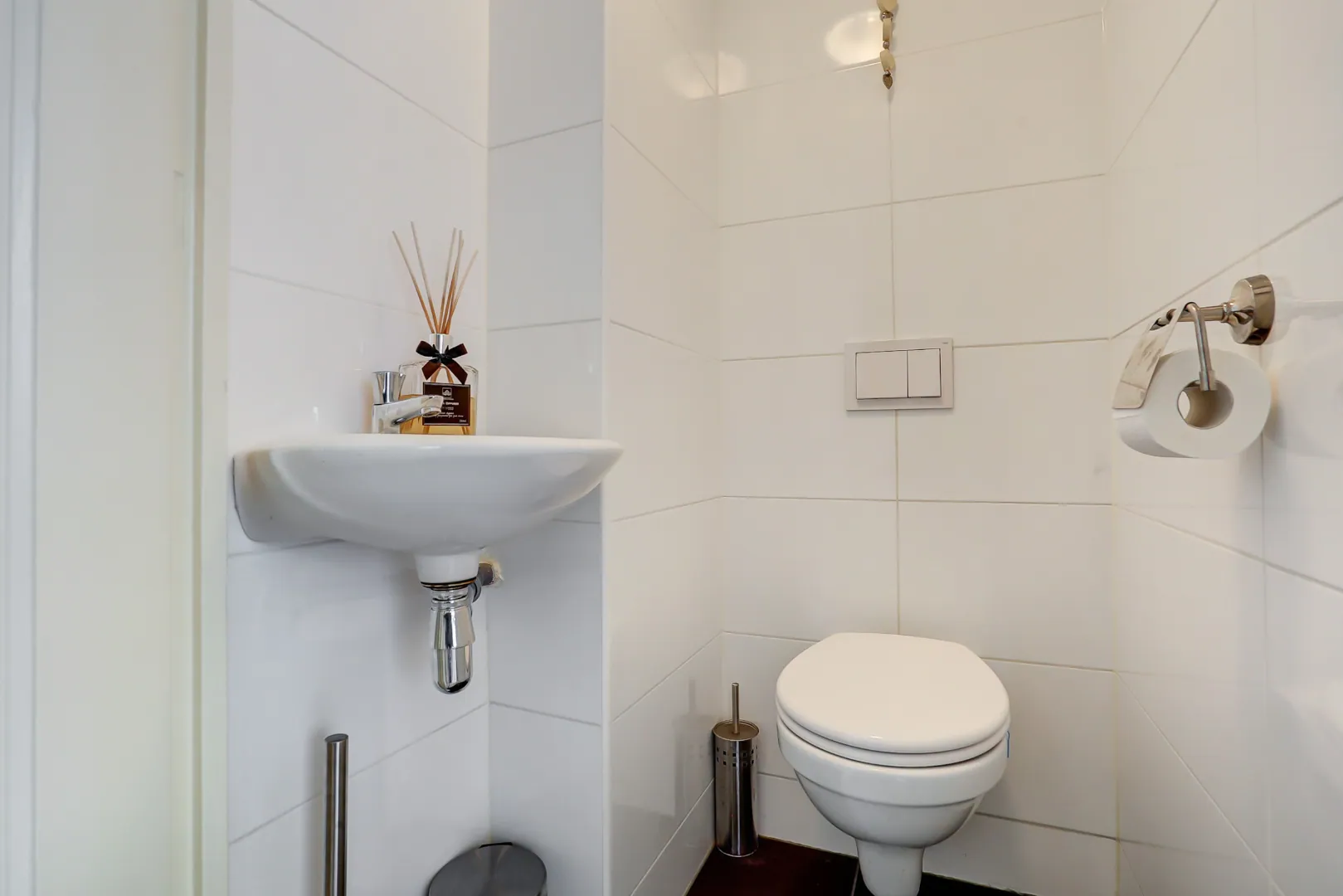 De hal van het appartement geeft toegang tot 2 vaste kasten, met in één daarvan de C.V.-ketel (HR combiketel uit 2016). HEt gehele appartement is voorzien van eenzelfde, fraaie laminaatvloer. De toiletruimte is voorzien van een zwevend toilet met fonteintje.
