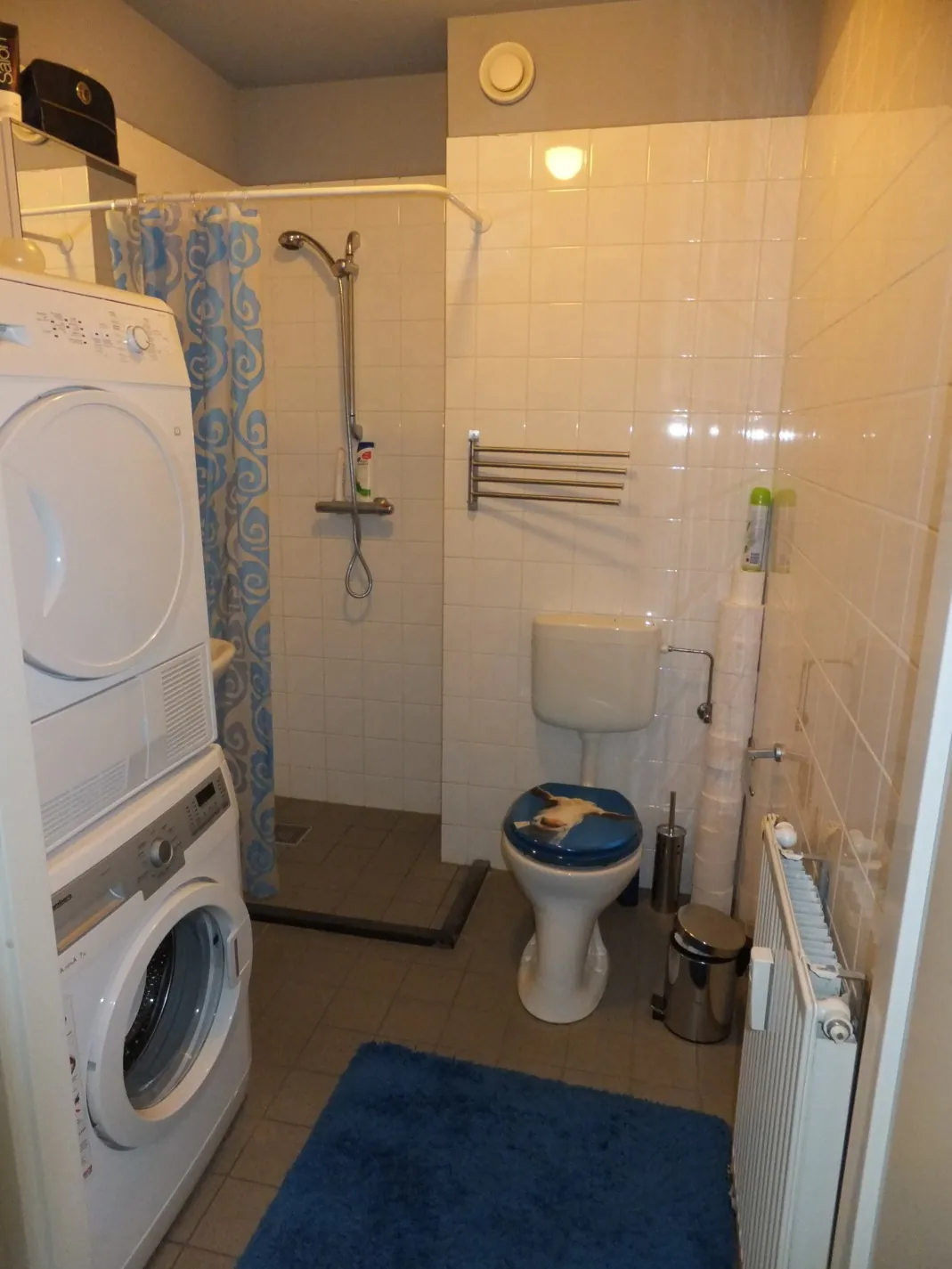 Entree/hal met meterkast, toegang naar de badkamer en de woonkamer. De badkamer is voorzien van douche, wastafel en toilet en beschikt tevens over een aansluiting voor de wasmachine.