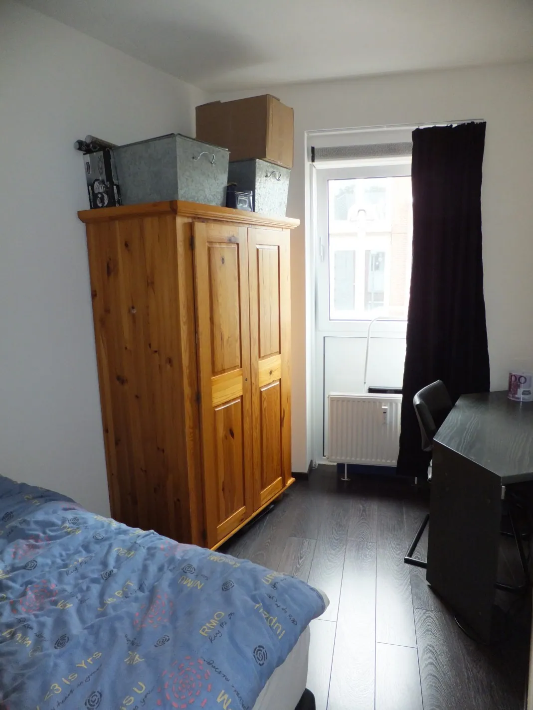 De woonkamer met open keuken is voorzien van een fraaie laminaatvloer en beschikt over een Frans balkon. De keuken is voorzien van wasbak, inductiekookplaat, afzuigkap en koelkast (los). De slaapkamer is bereikbaar vanuit de woonkamer en heeft veel lichtinval door het grote draai-/kiepraam.