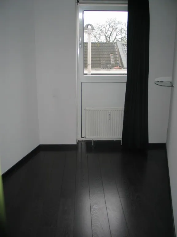De slaapkamer is bereikbaar vanuit de woonkamer en heeft veel lichtinval door het grote draai-/kiepraam.