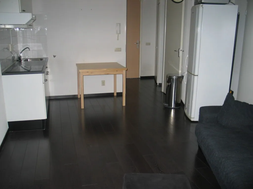 De woonkamer met open keuken is voorzien van een fraaie laminaatvloer en beschikt over een Frans balkon. De keuken is voorzien van wasbak, inductiekookplaat, afzuigkap en koelkast (los).