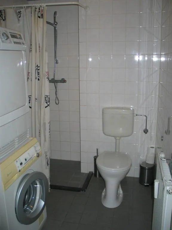 Entree/hal met meterkast, toegang naar de badkamer en de woonkamer. De badkamer is voorzien van douche, wastafel en toilet en beschikt tevens over een aansluiting voor de wasmachine.