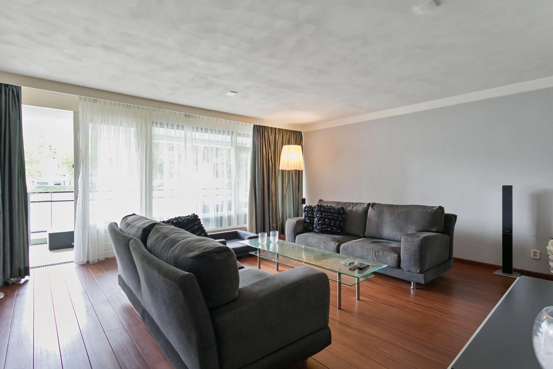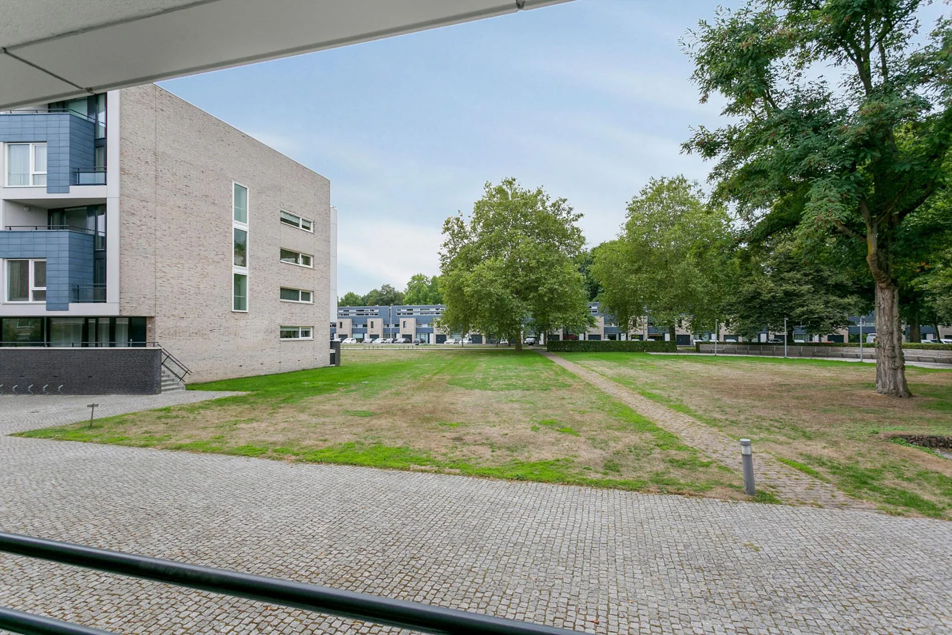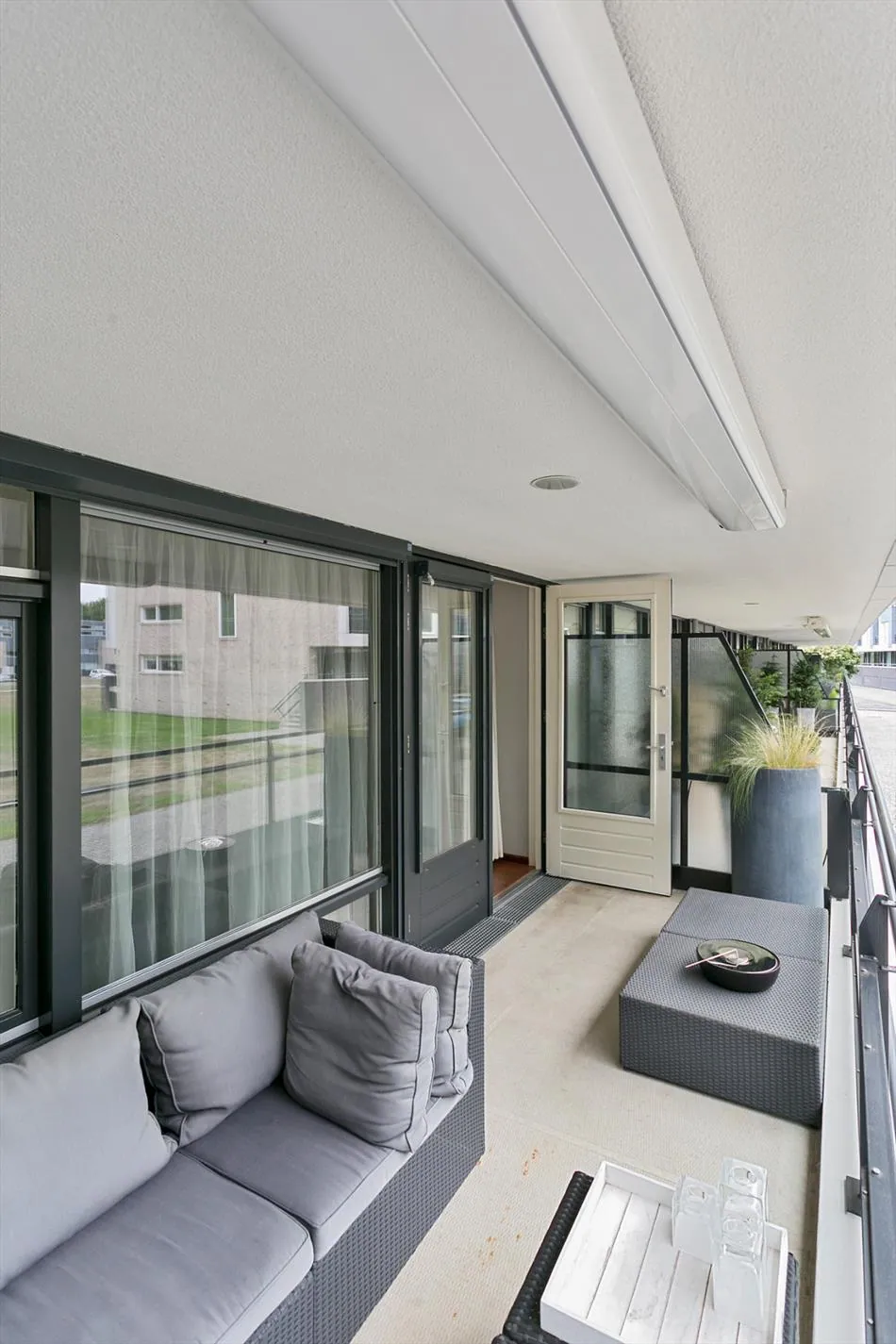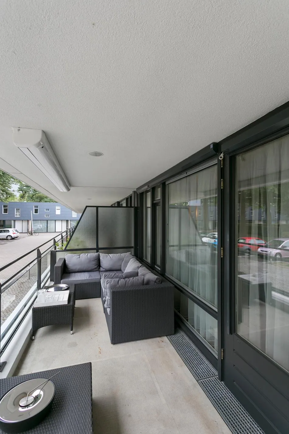 Aan de achterzijde van het appartement bevindt zich het ruime balkon met uitzicht over het plantsoen.