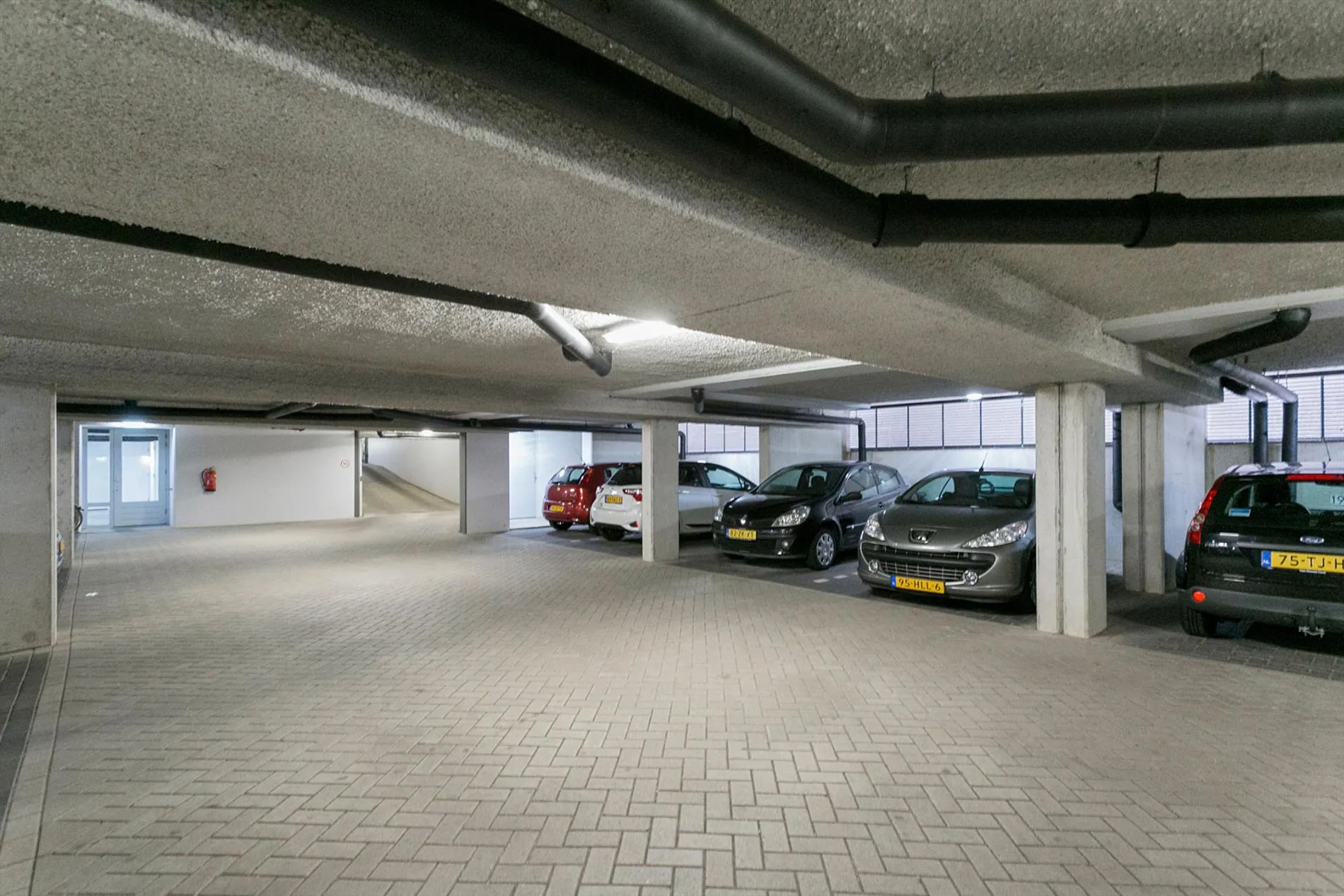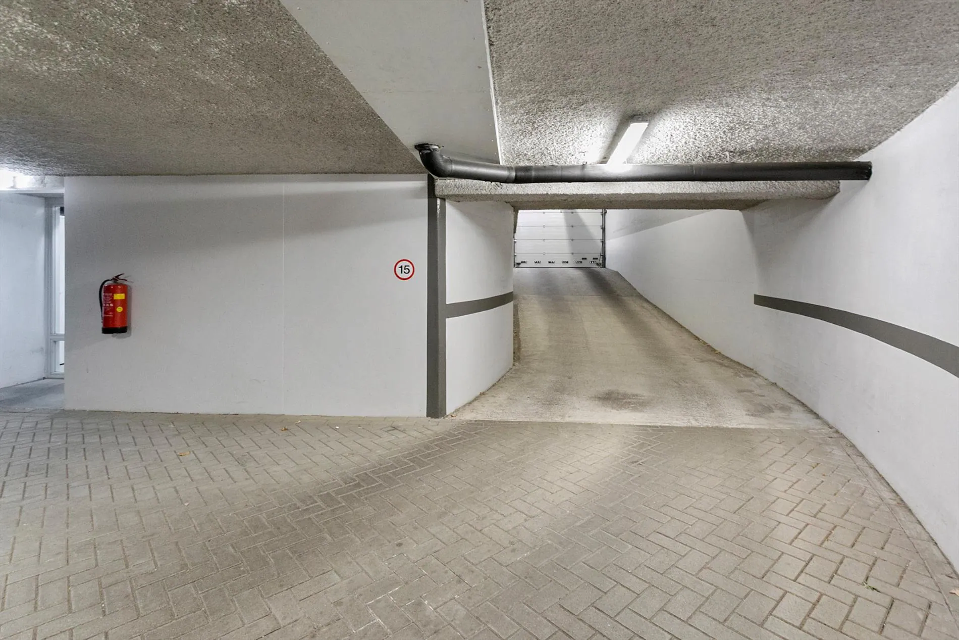 De berging is toegankelijk via een toegangsdeur aan de voorzijde van het complex. Deze ruimte geeft naast toegang tot de bergingen ook toegang tot de onder het complex gelegen parkeergarage met de eigen parkeerplaats. De garagedeur kan op afstand vanuit de auto worden geopend.
