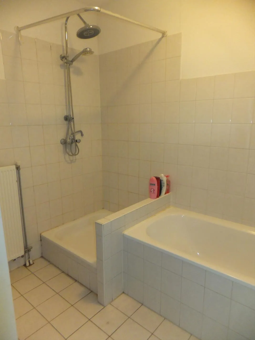 Badkamer voorzien van wastafel, ligbad en douche;