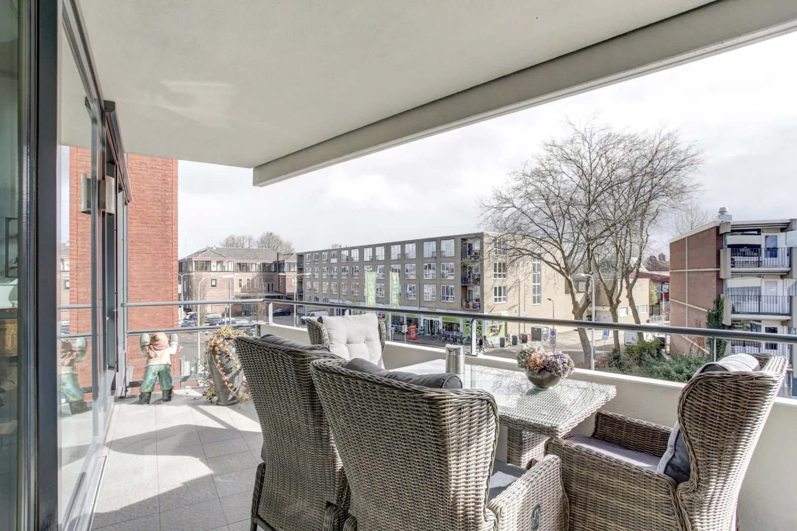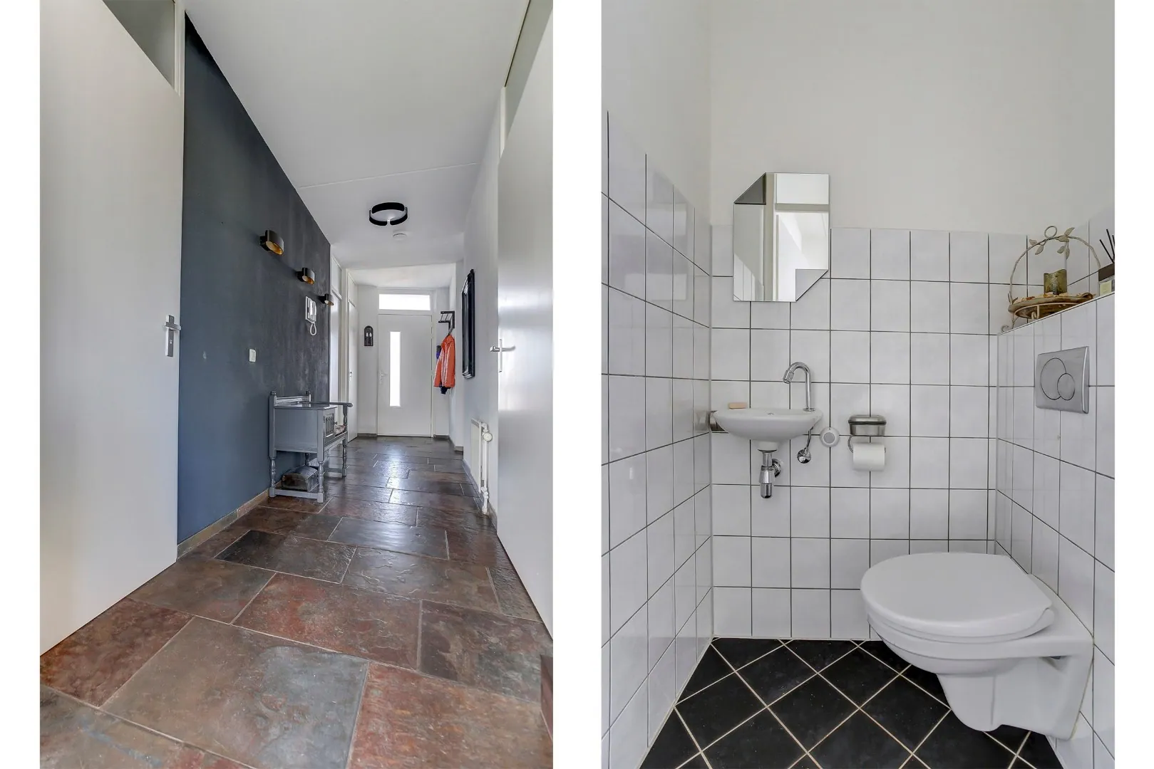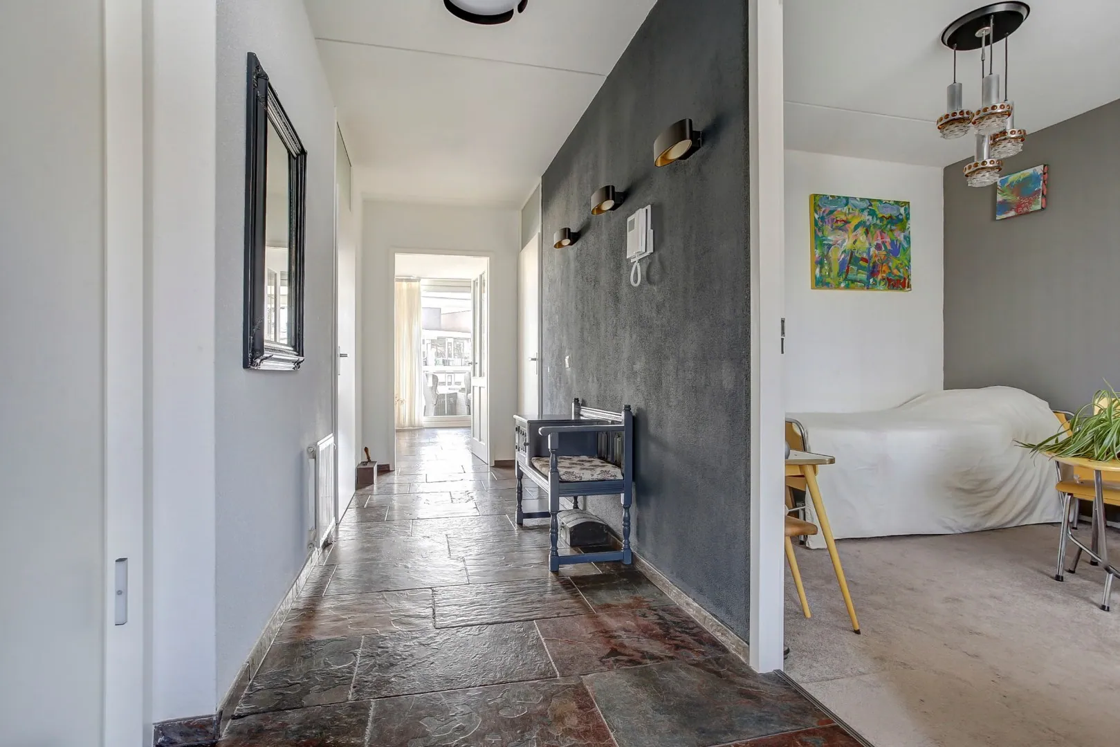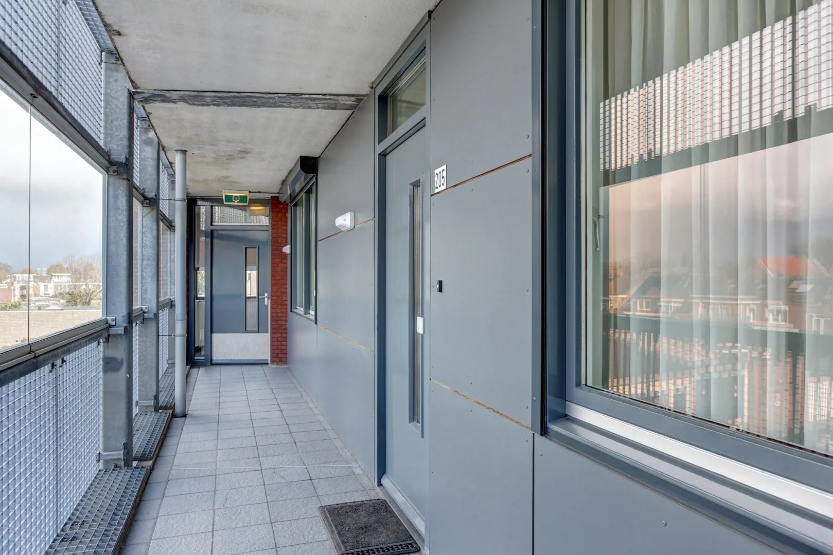 Je stapt het appartementencomplex binnen in een besloten entree met de brievenbussen, het trappenhuis en een lift. Het appartement is gelegen op de 2e verdieping.
