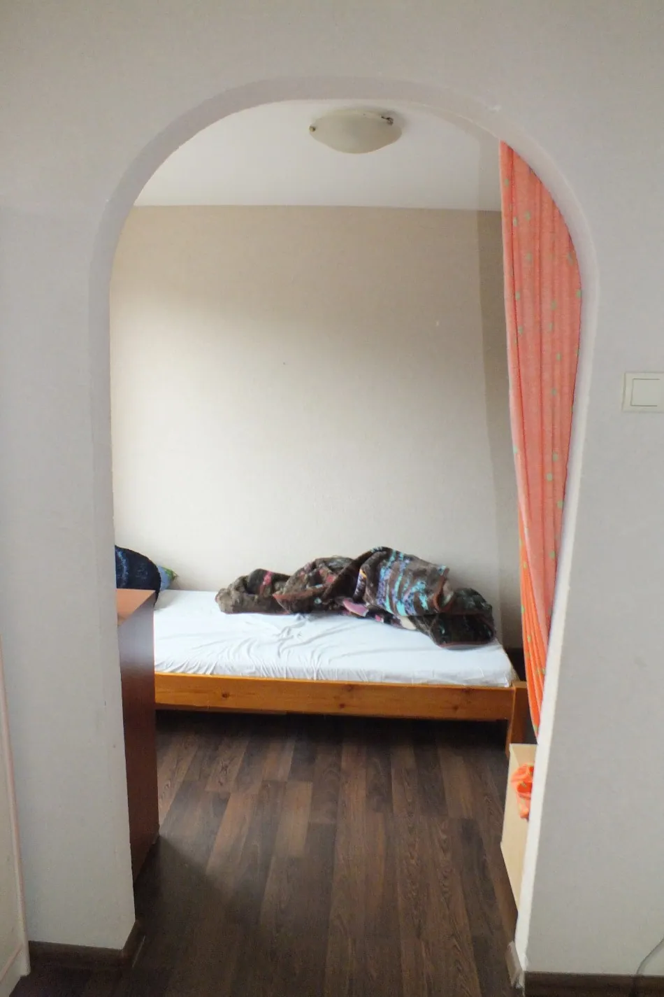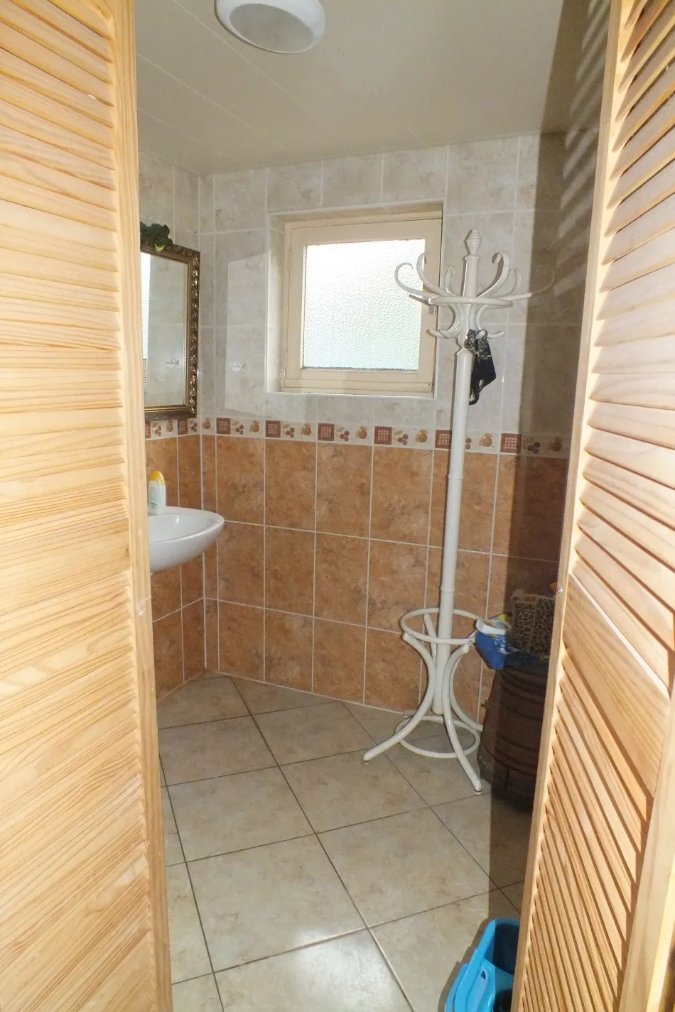 Overloop met laminaatvloer, 2 slaapkamers (waarvan 1 voorheen 2 slaapkamers); ruime volledig betegelde badkamer met wastafel en douche, vaste trap naar de zolder.
