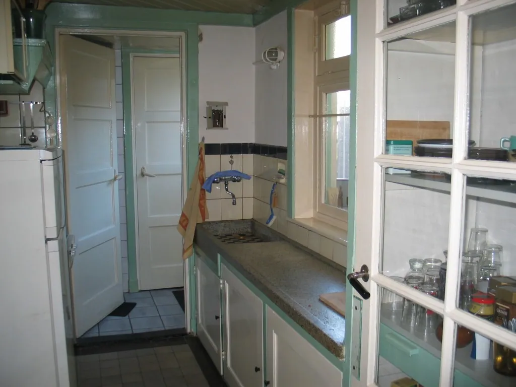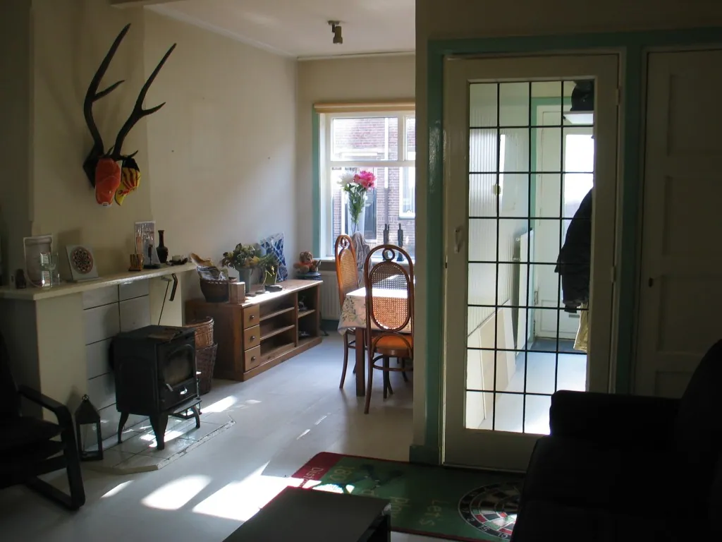 Entree/hal met laminaatvloer, trap naar de eerste verdieping en diepe kelderkast. Uitgebouwde woonkamer voorzien van stucplafond en spachtelputz wanden, laminaatvloer en vaste kast met meterkast. Keuken met origineel granito werkblad, bijkeuken met C.V.-ketel, douche, toilet en toegang naar de achtertuin.