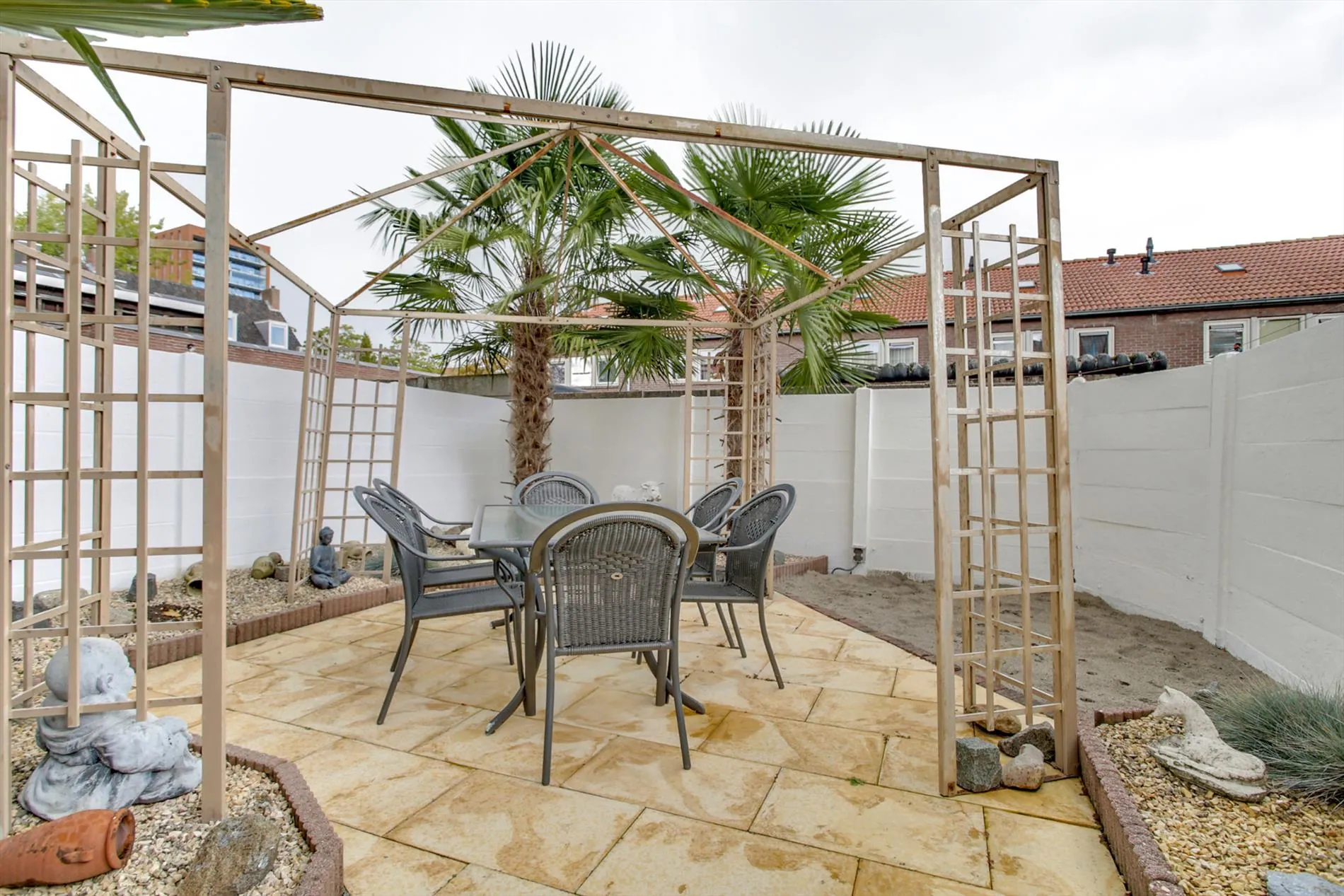 De tuin is geheel onderhoudsvriendelijk en mediterraan ingericht.