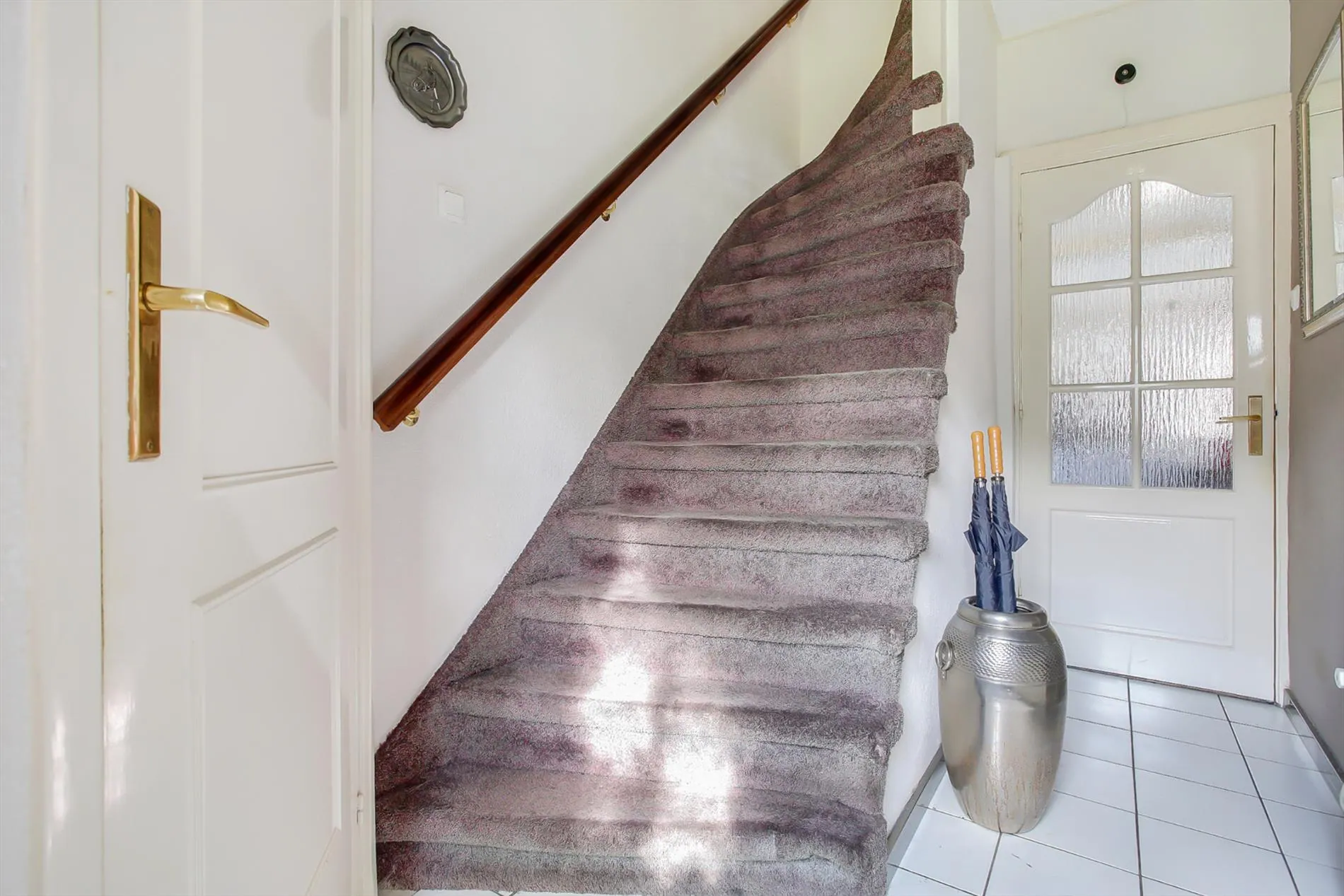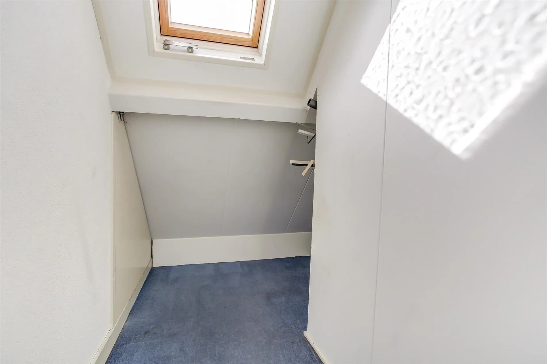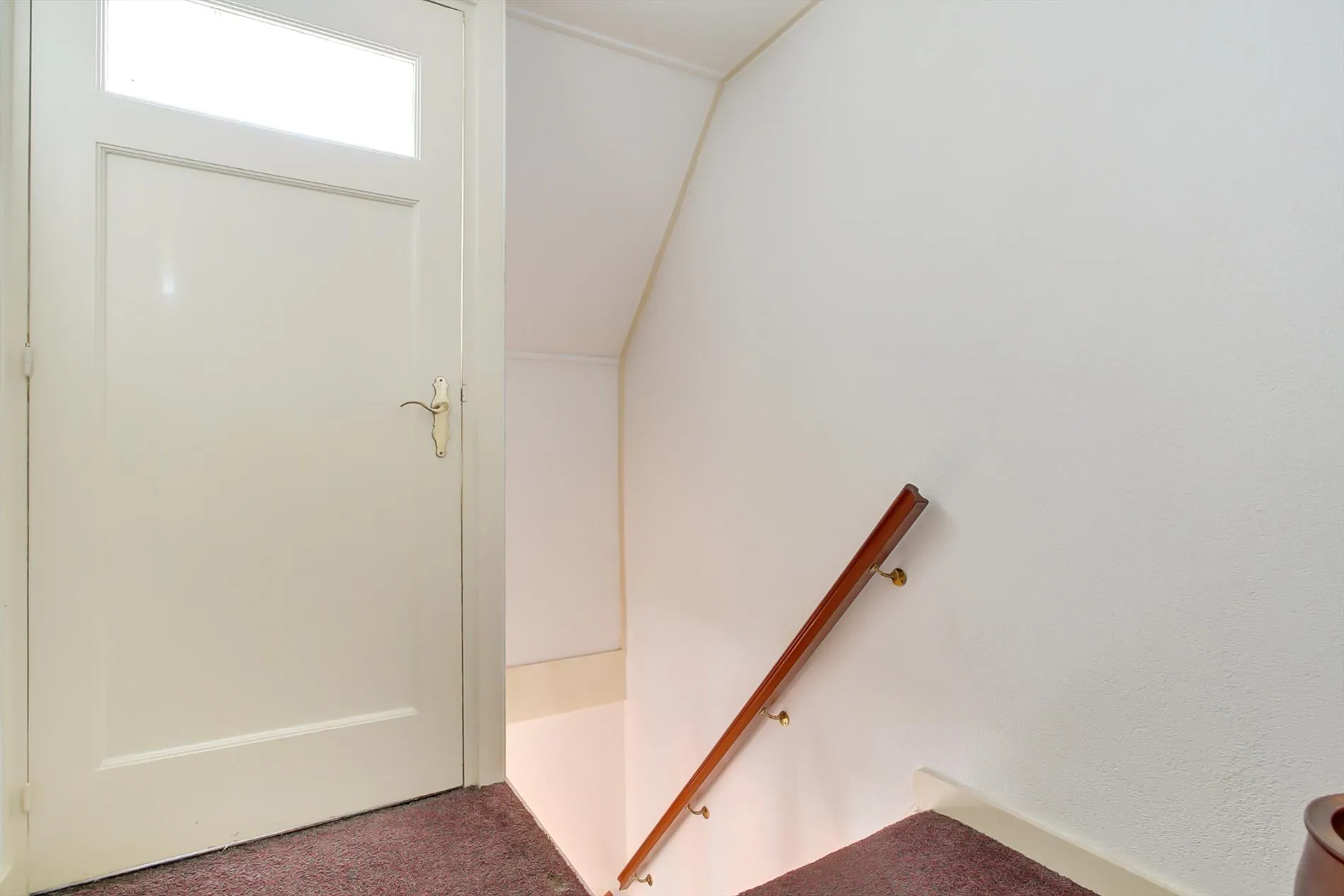 Vaste trap naar de zolderverdieping met een grote slaapkamer met dakkapel en diverse bergzolders.
