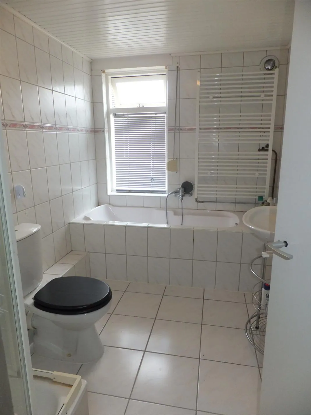Entree/hal met trapopgang naar de 1e verdieping en toegang naar de woonkamer. Woonkamer met laminaatvloer, erg ruime keuken voorzien van keukenblok met diverse inbouwapparatuur, berging met meterkast (5 groepen), toegang naar de bijkeuken met C.V.-combiketel (HR, Remeha), betegelde toiletruimte (voorheen badkamer).