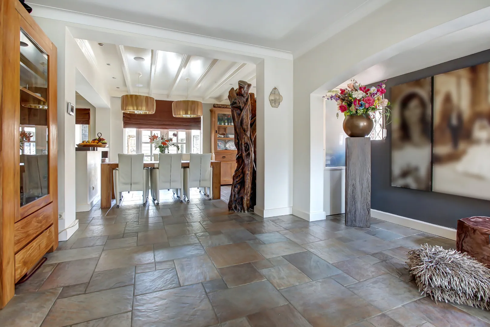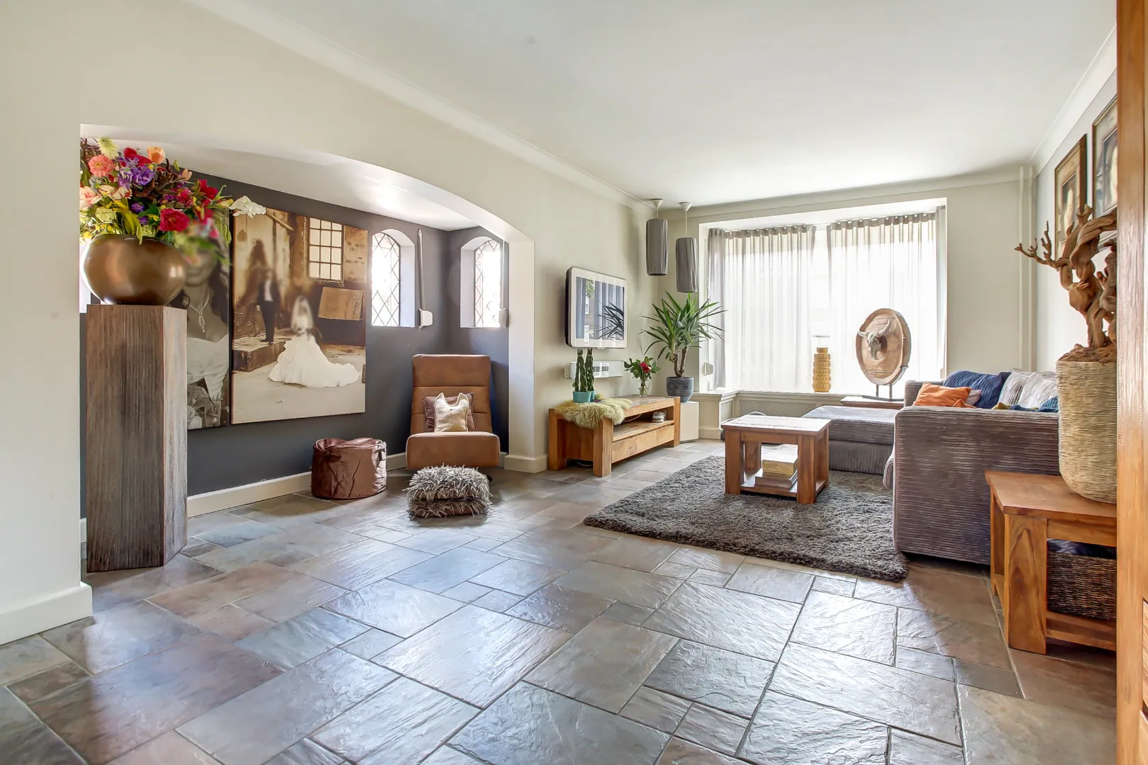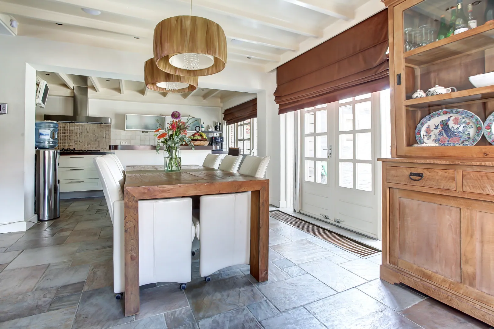 Hal, zwevend toilet, ruime woonkamer van ca. 50 m2 voorzien van luxe tegelvloer, luxe keuken o.a. voorzien van 5-pits gaskookplaat, rvs afzuigkap, magnetron, oven, vaatwasser en koelkast.