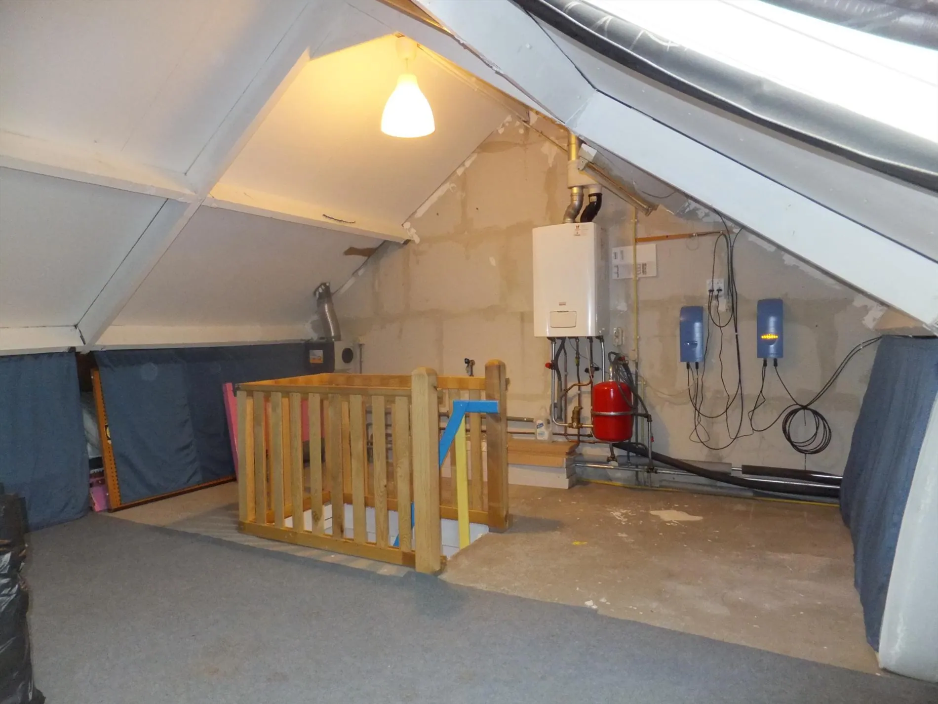 Middels een vaste trap vanuit de overloop bereikt men de zolderverdieping. De zolder wordt nu gebruikt als bergzolder, maar de zolder is geïsoleerd en vanwege de hoogte is deze prima geschikt om er een slaapkamer van te maken. De C.V.-combiketel (AWB HR 2003) is hier geplaatst en ook zijn de units van de zonnepanelen hier gemonteerd.