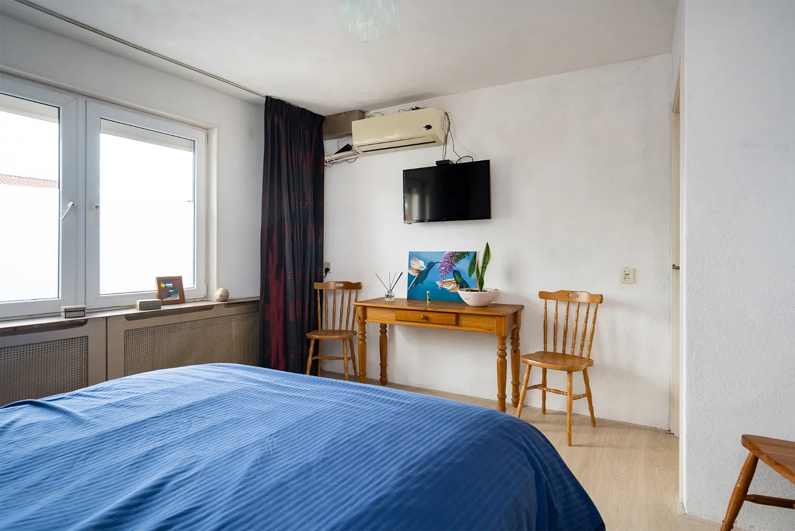 Overloop met 3 slaapkamers, waarvan 1 met airco en 1 slaapkamer met wasmachine aansluiting.