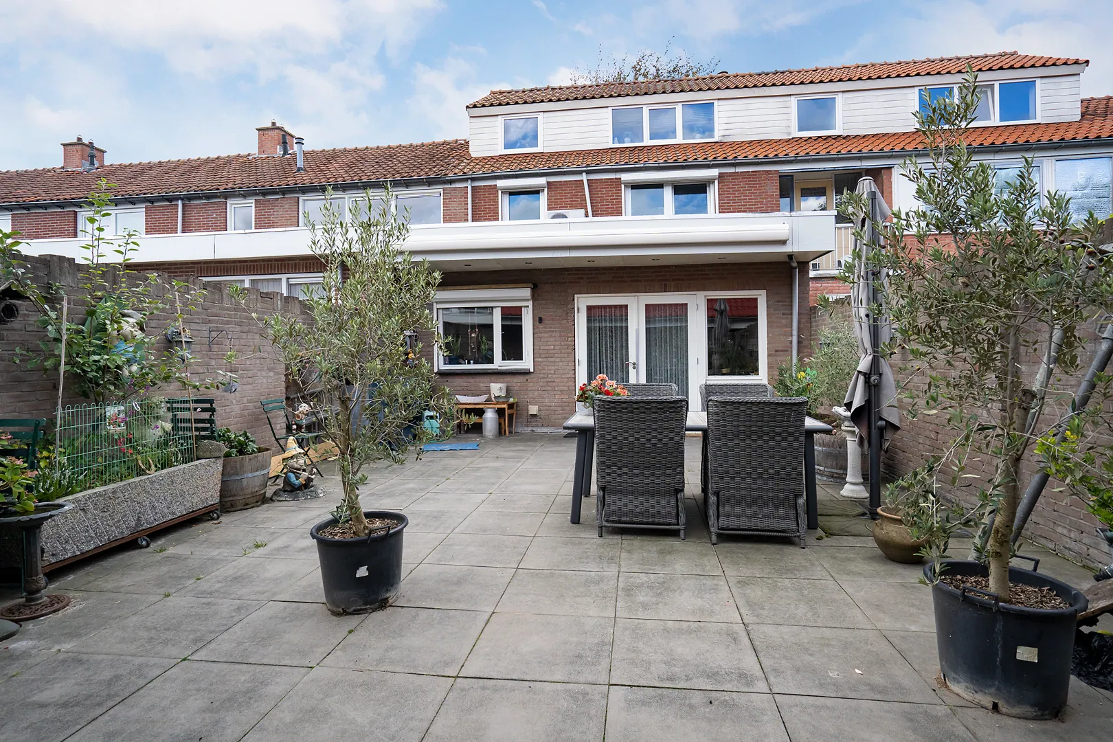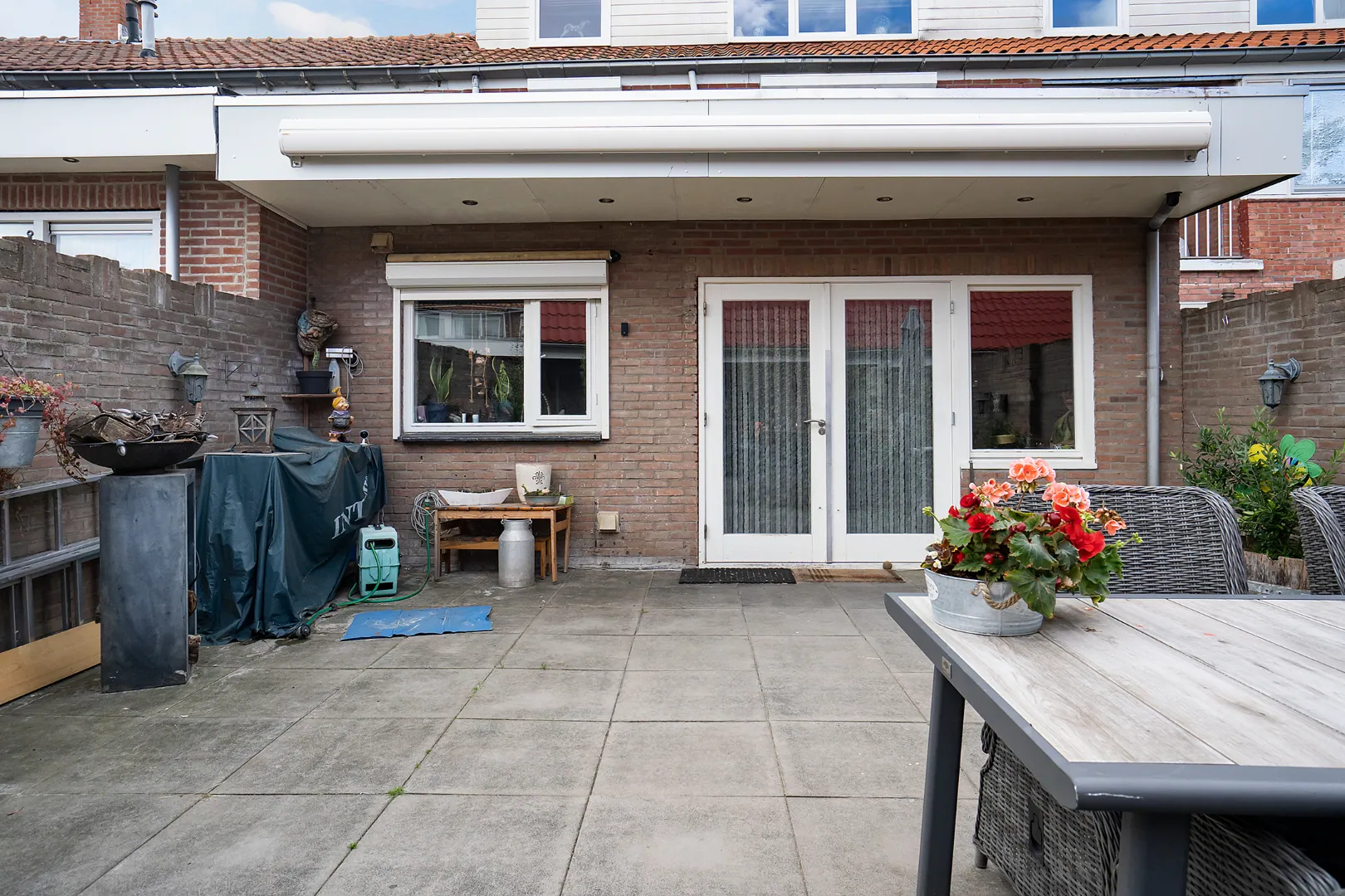 Volledig verharde achtertuin met toegang tot ruime berging met zadeldak, tevens achterom aanwezig.