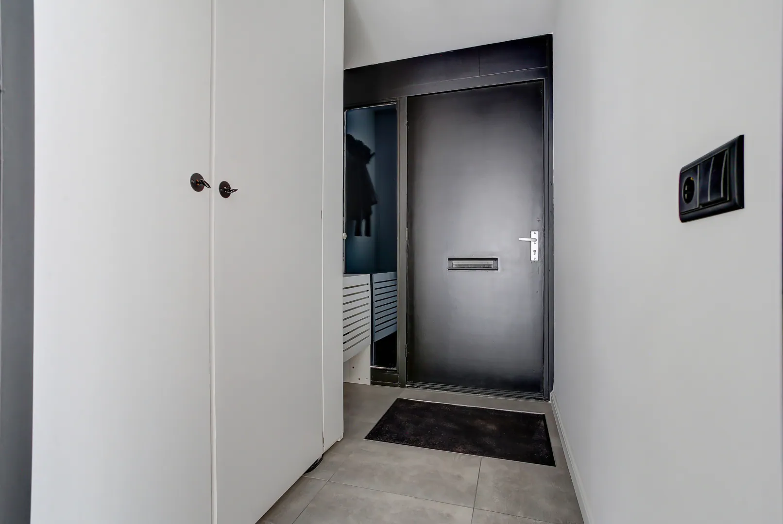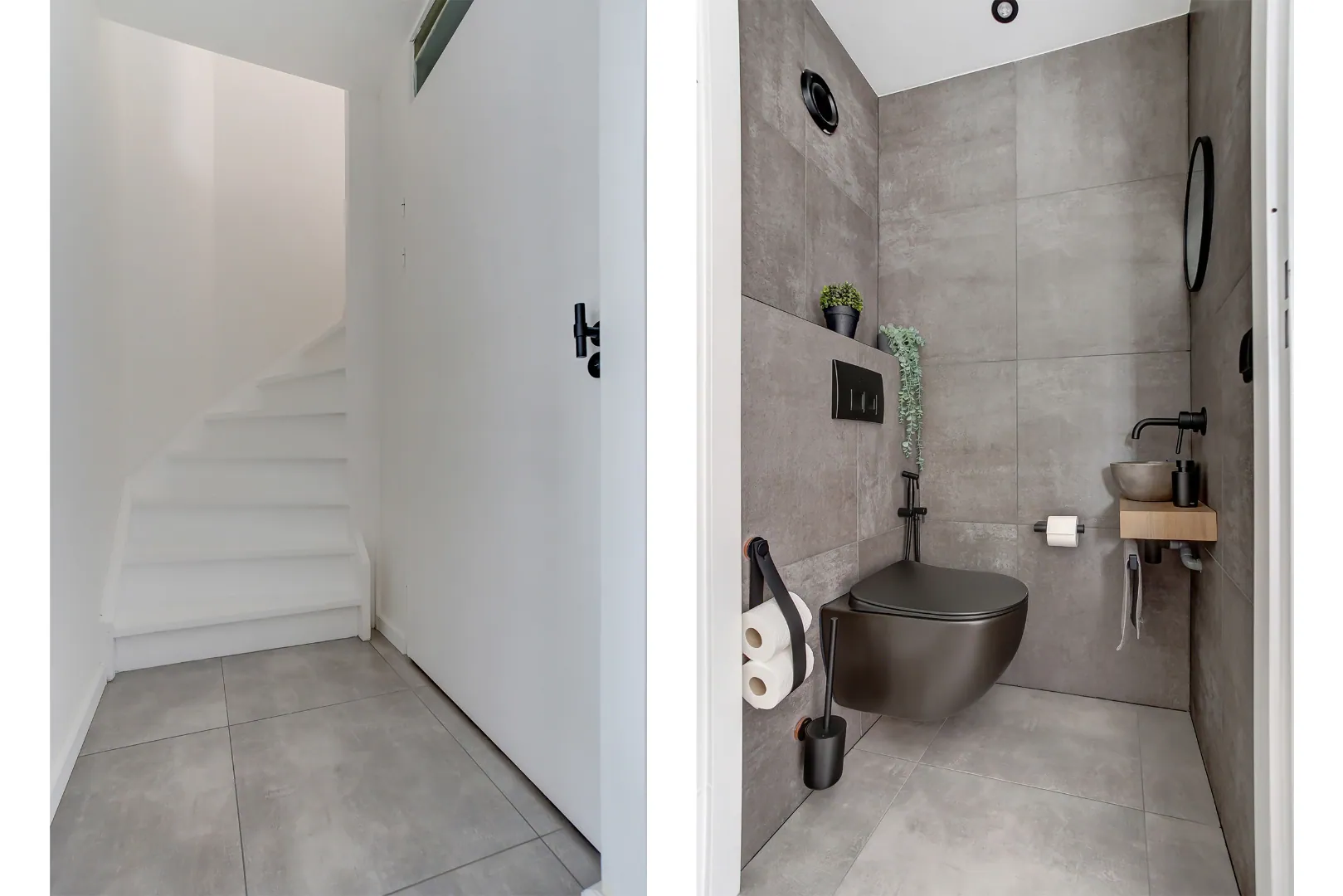 Tussenportaal met toegang tot de trapopgang en het vernieuwde toilet voorzien van zwevend toilet en fonteintje.