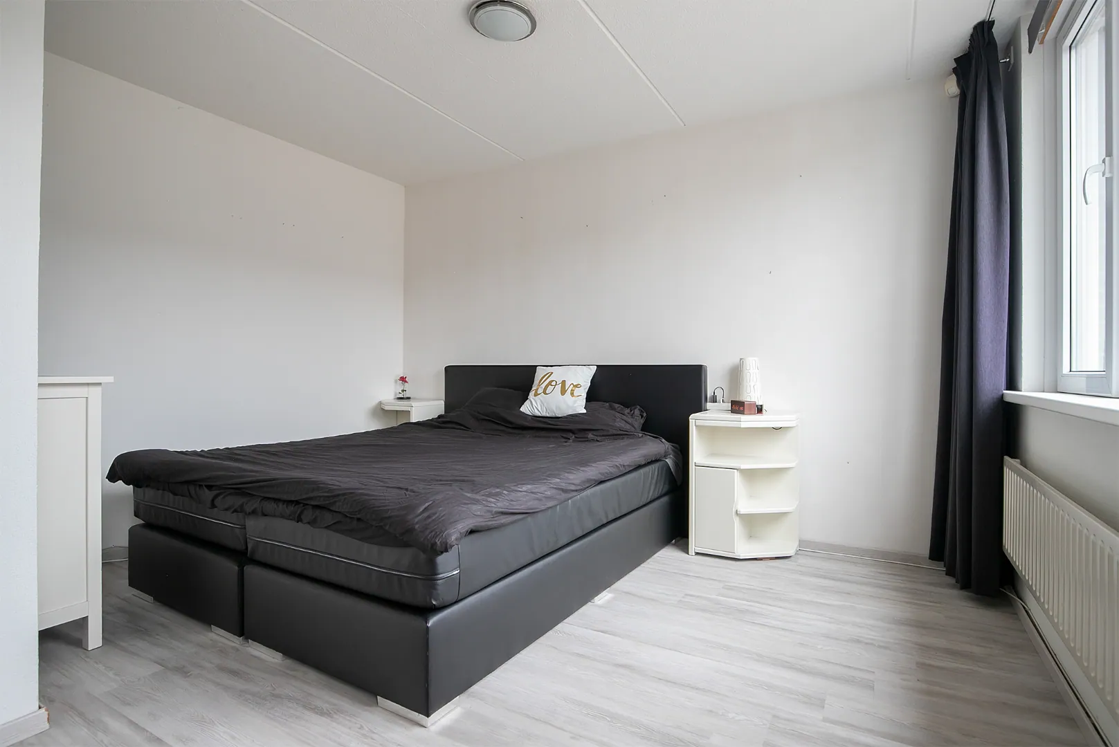 Aan de voorzijde ligt een ruime slaapkamer (dit waren voorheen 2 slaapkamers) voorzien van veel opbergmogelijkheden in de vaste kastenwand. Aan de achterzijde ligt een 2e slaapkamer van goed formaat en ook de badkamer ligt aan de achterzijde, deze is voorzien van douche, ligbad, wastafel en toilet. De slaapkamers zijn voorzien van een moderne laminaatvloer.