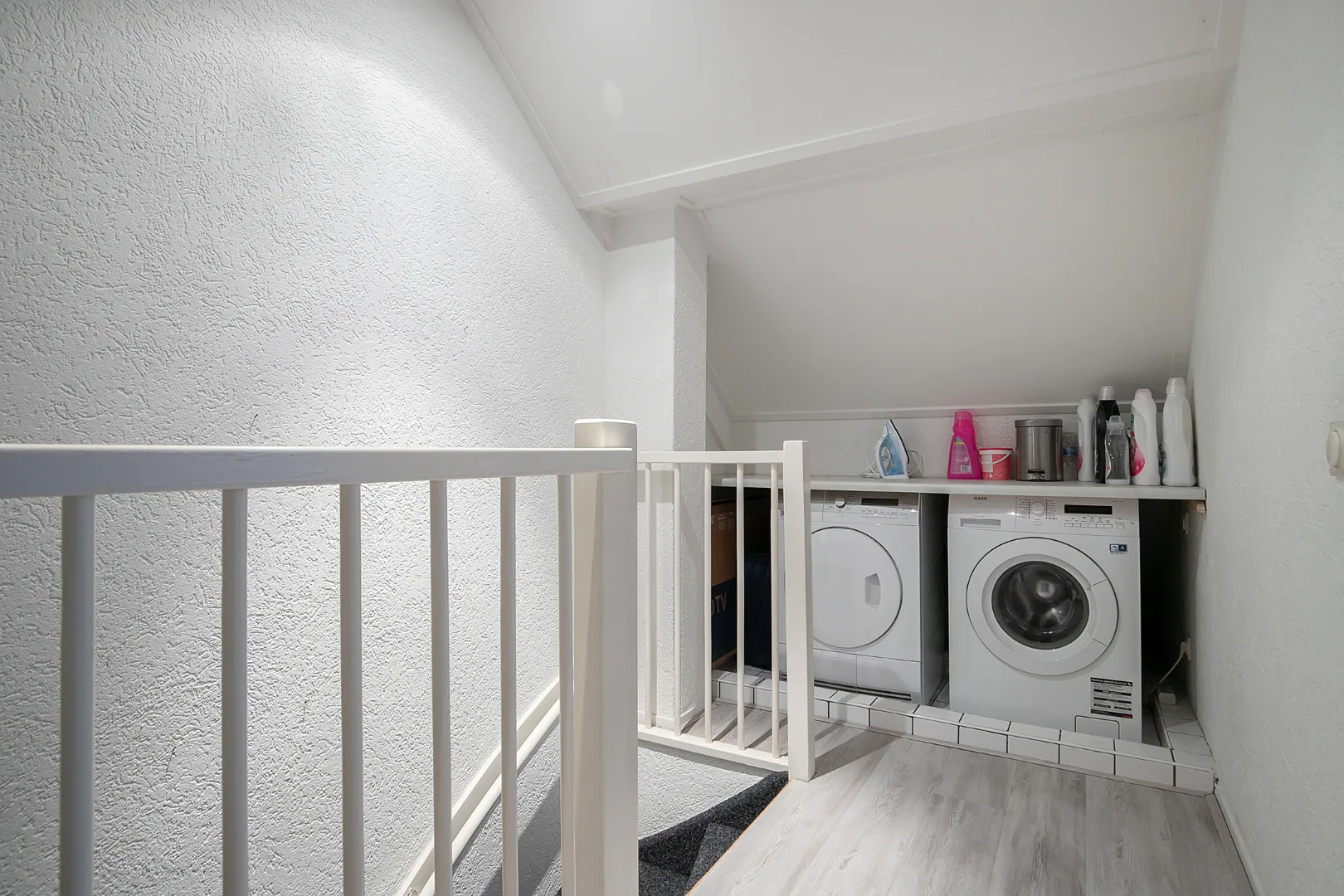 Op de voorzolder bevindt zich de aansluiting voor de wasmachine.