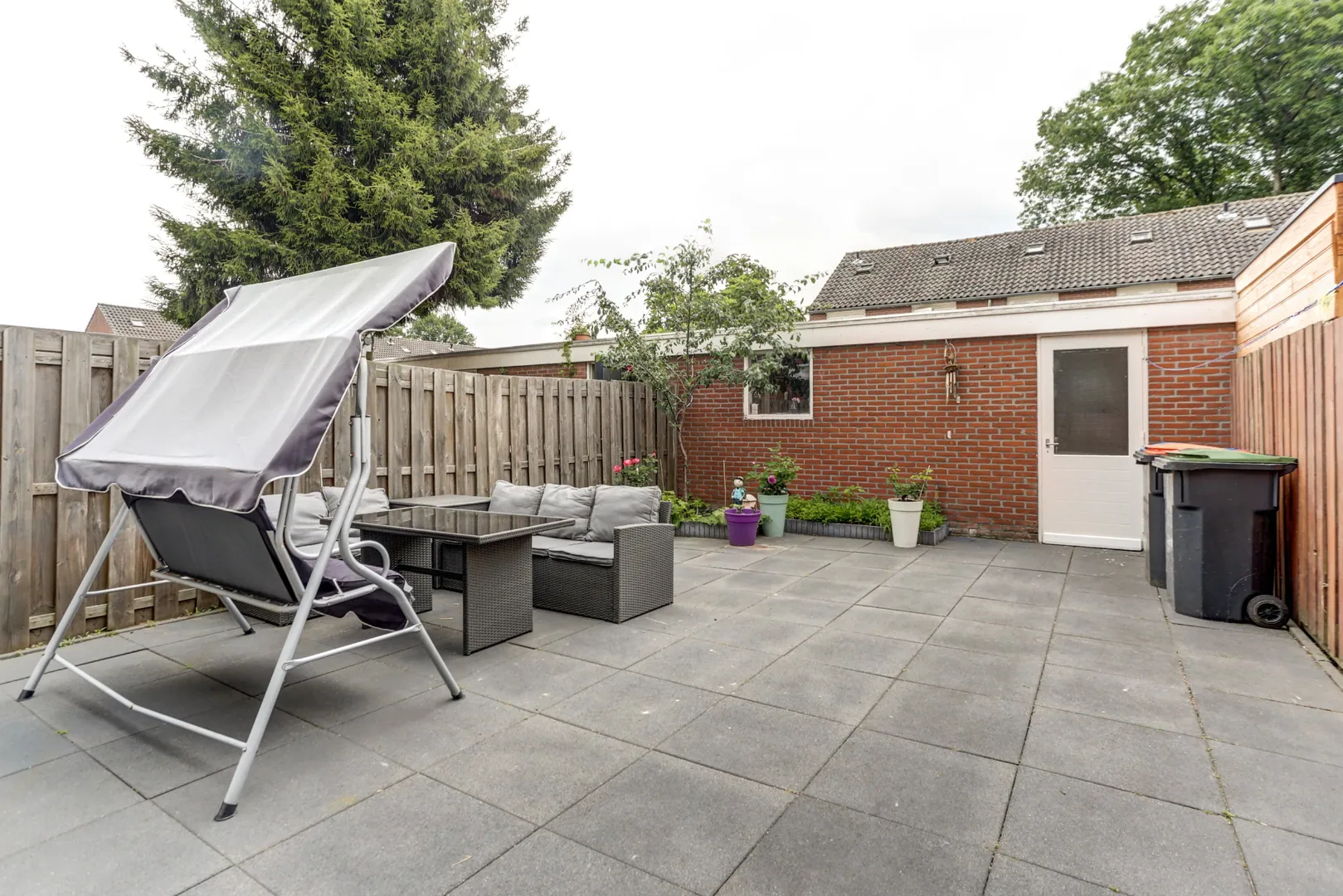 Achtertuin, gelegen op het oosten, onderhoudsarm vanwege dat deze geheel voorzien is van sierbestrating.