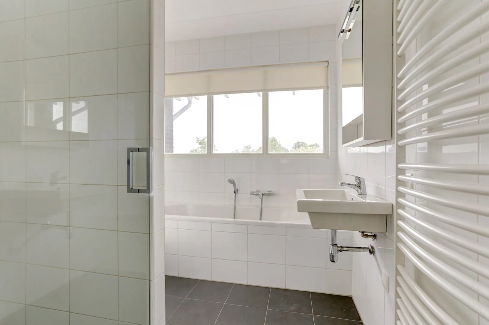 Overloop, 3 slaapkamers van ca. 7,5 m2, 11 m2 en 15 m2 (allen voorzien van een draai -/ kiepraam) en de volledig betegelde en moderne badkamer welke is ingericht met ligbad, inloopdouche en zwevend toilet. De overloop en de slaapkamers zijn afgewerkt met een mooie laminaat vloer.