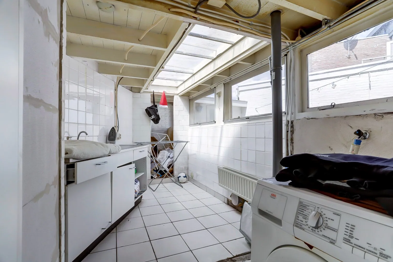 Via de hal zijn ook een douche, de bijkeuken en de achtertuin bereikbaar.