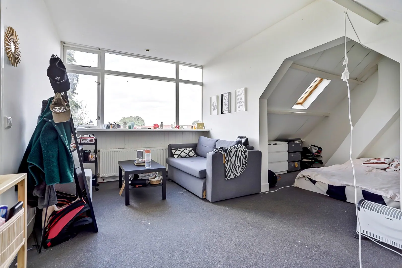 Ruime zolderverdieping met dakkapel.