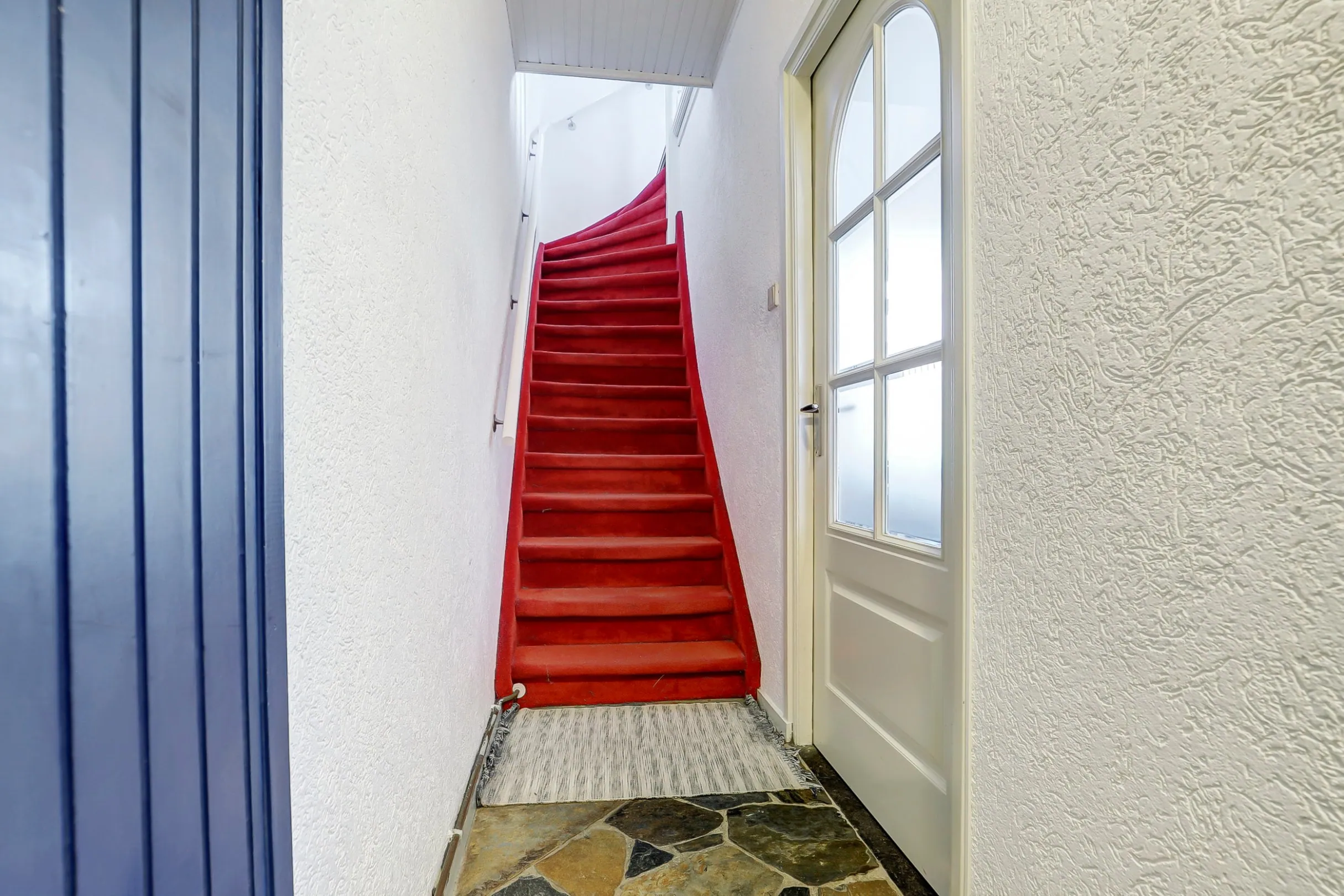 Via de entree/hal met trapopgang bereik je de woonkamer.