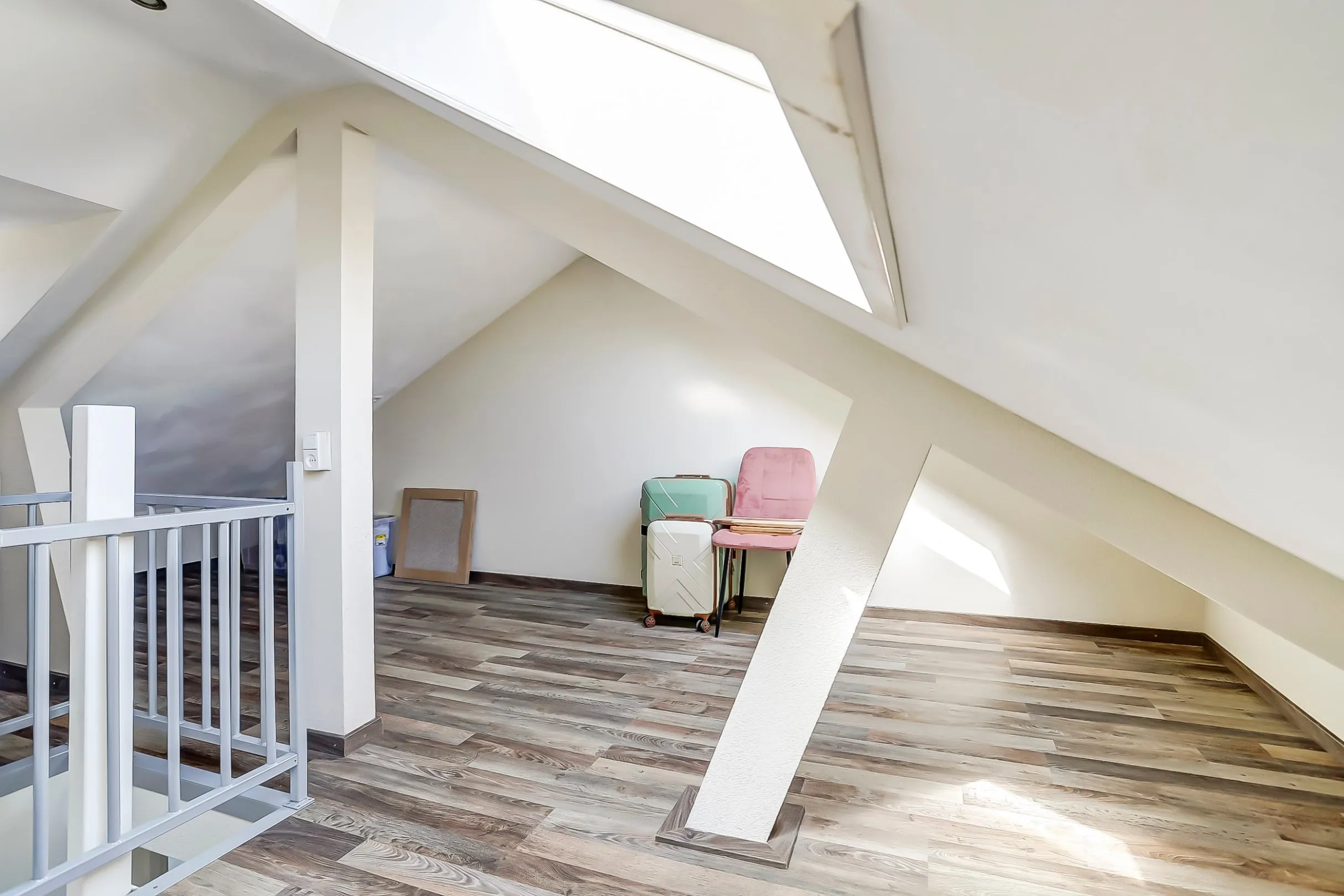 Ruime zolder welke voorzien is van dakkapel, 2 dakramen en een laminaatvloer. Kan als 3e slaapkamer gebruikt worden, eventueel met een kleine aanpassing.