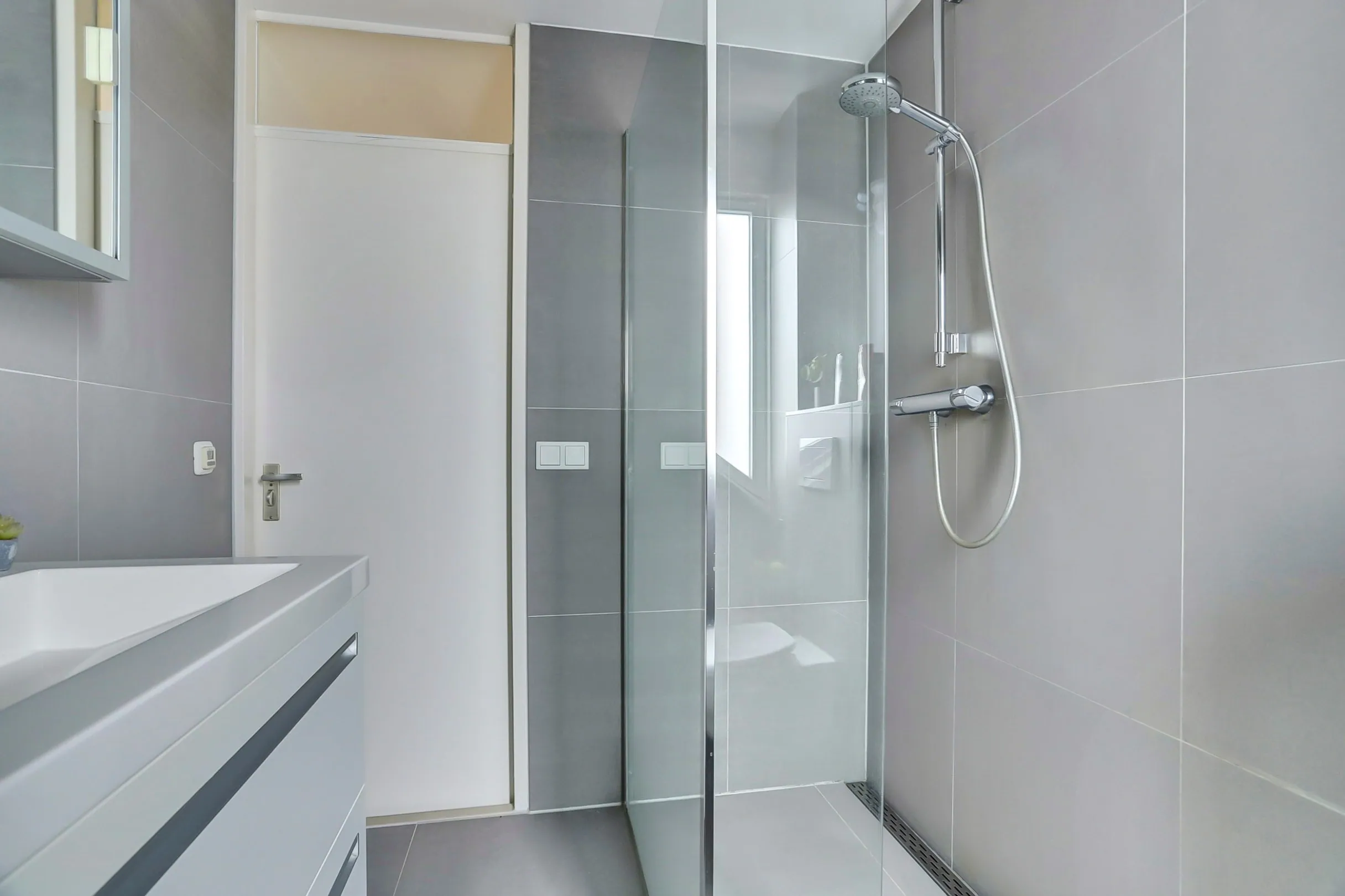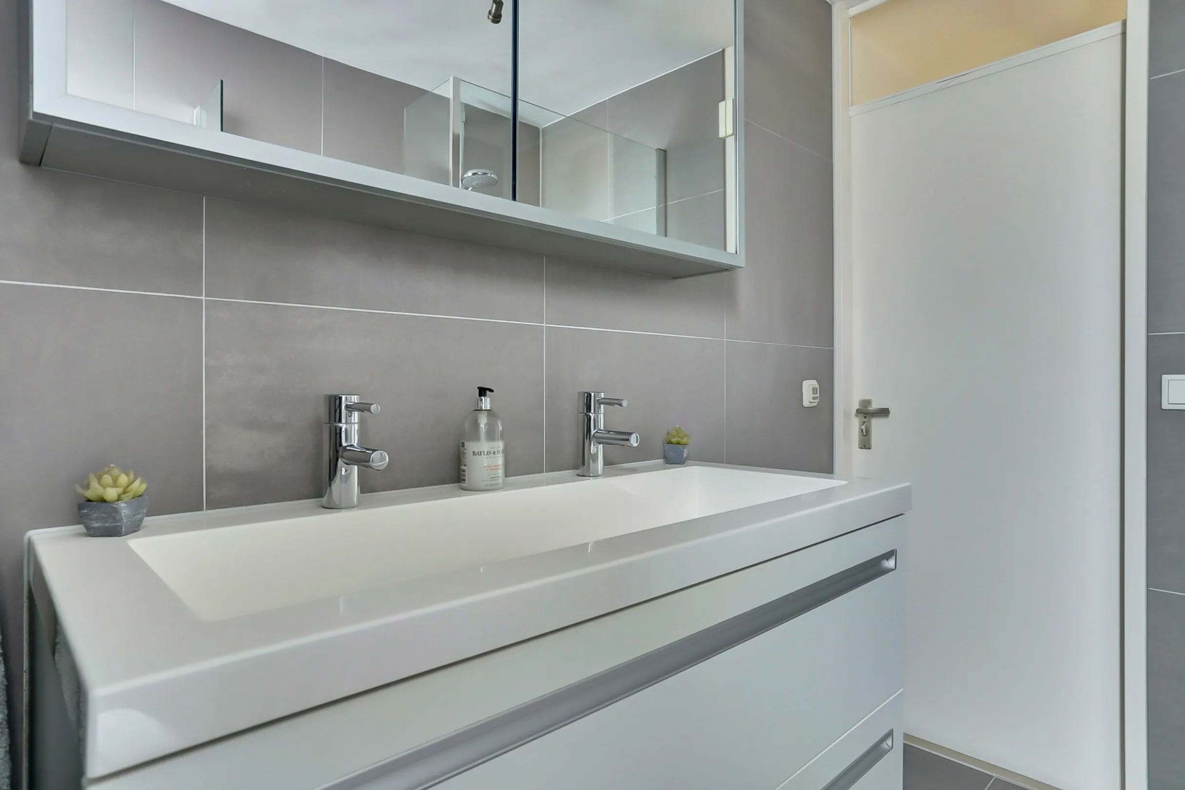 Via de overloop komt U in 2 ruime, lichte slaapkamers en een badkamer voorzien van een inloopdouche, zwevend toilet, wandmeubel met 2 mengkranen, spiegelkast en designradiator.
