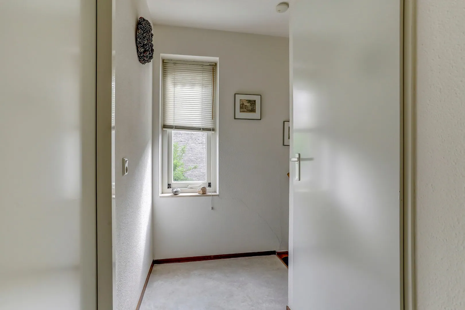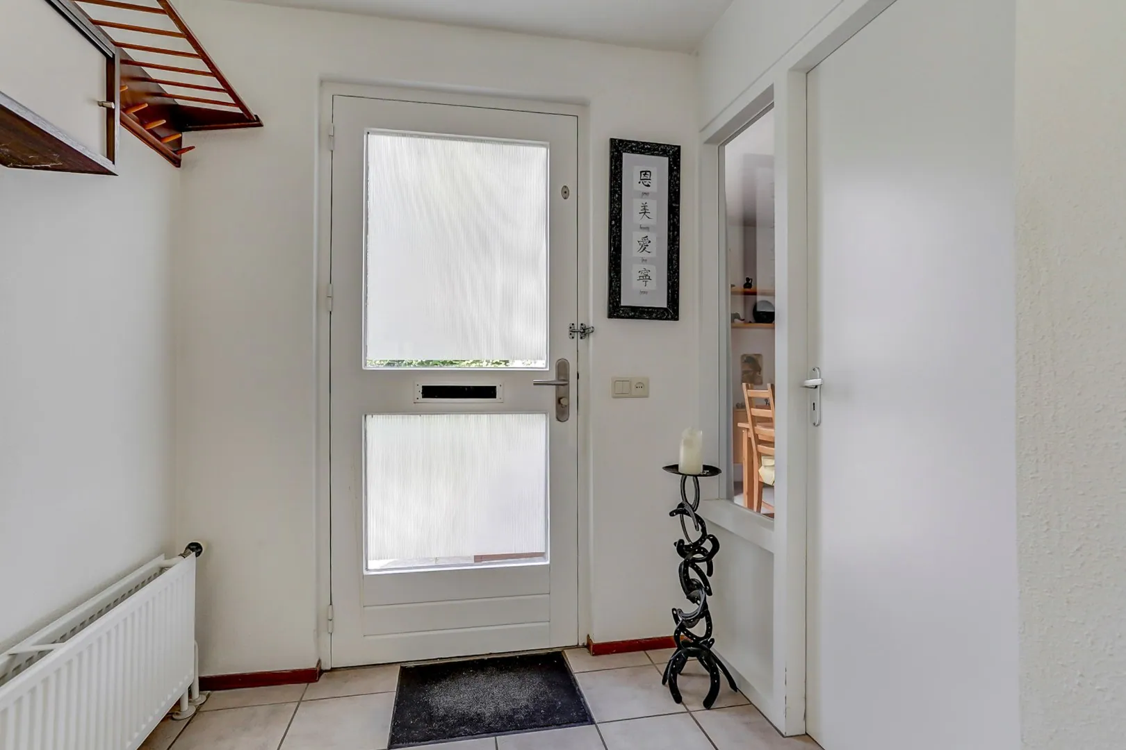 Hal met trapopgang en toegang naar de inpandige garage.