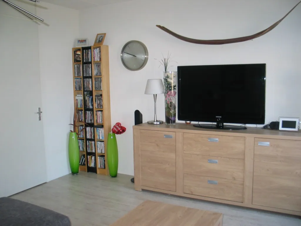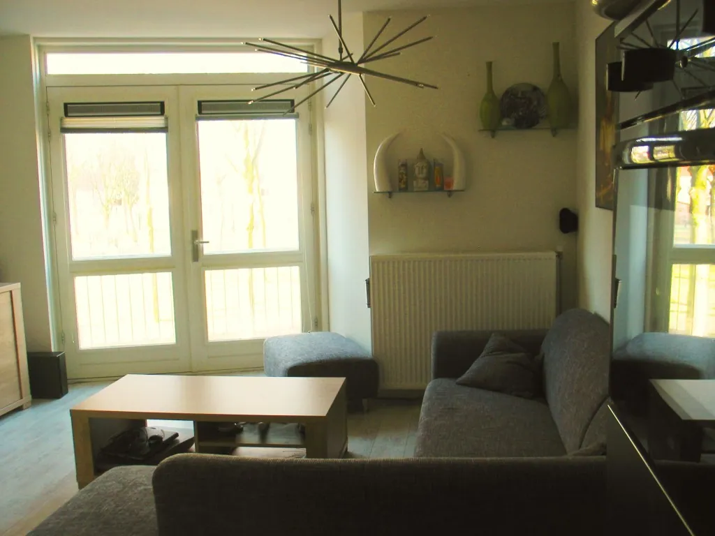 De woonkamer is aan de achterzijde van het appartement gesitueerd en is voorzien van een Frans balkon dat prettig uitzicht op een park heeft. Verder geeft de woonkamer toegang tot een ruime berging, waarin de C.V.-ketel (HR, 2007) is geplaatst.