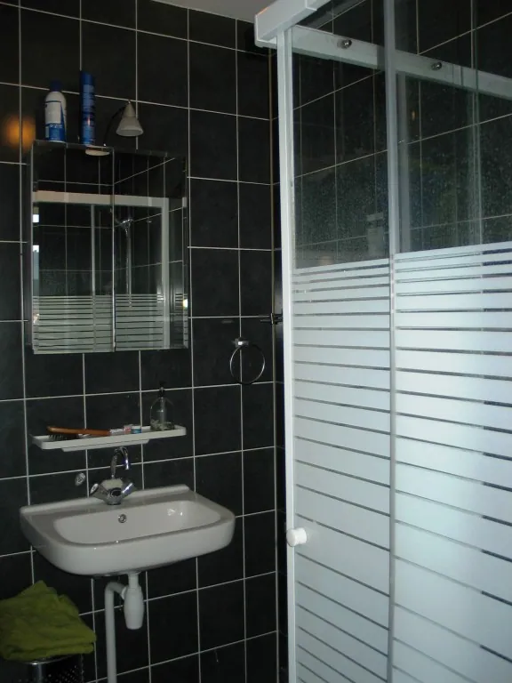 De badkamer is verbonden aan de slaapkamer en is voorzien van een douchecabine en wastafel. Tevens bevindt zich hier een wasmachineaansluiting en is er ruimte voor een droger.